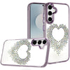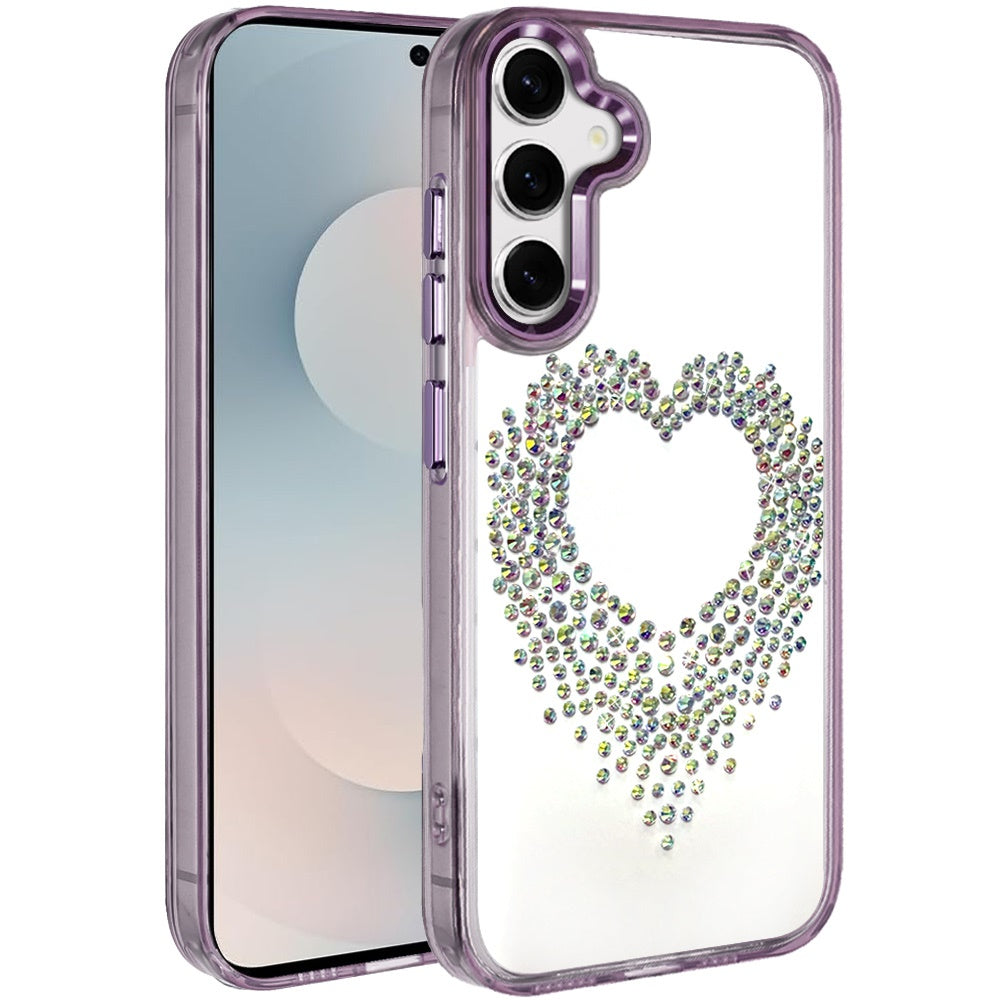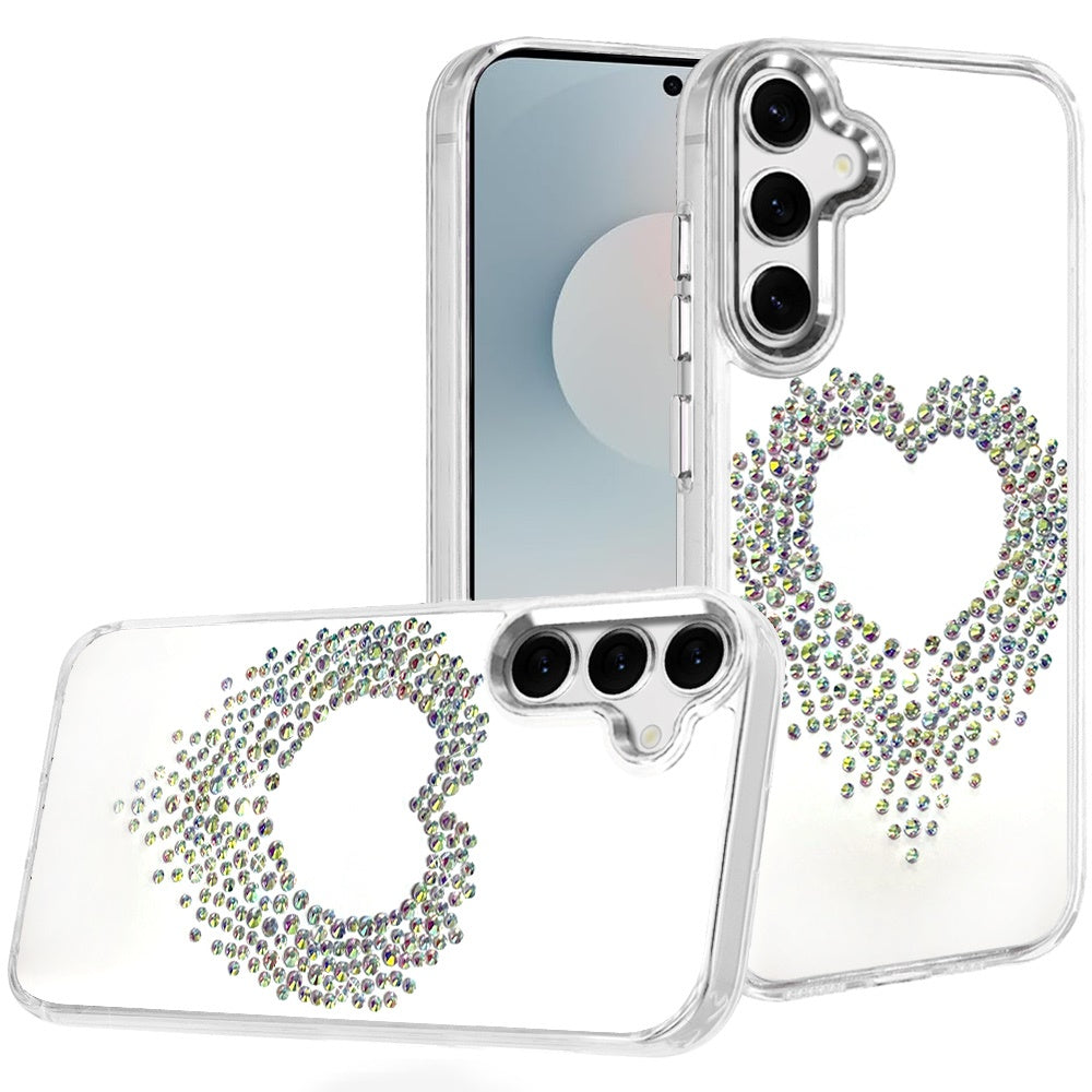 For Samsung S25 FE Case Heart Shaped Rhinestones on Clear Cover + Tempered Glass