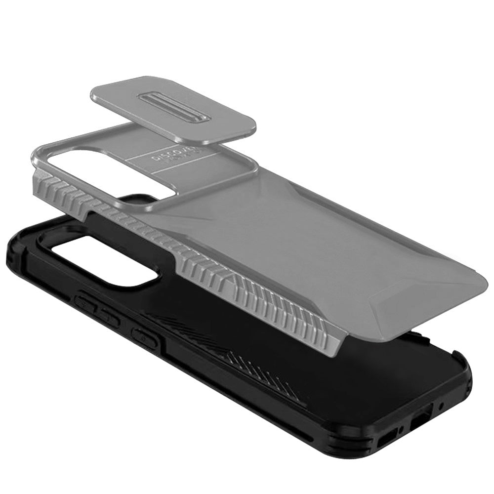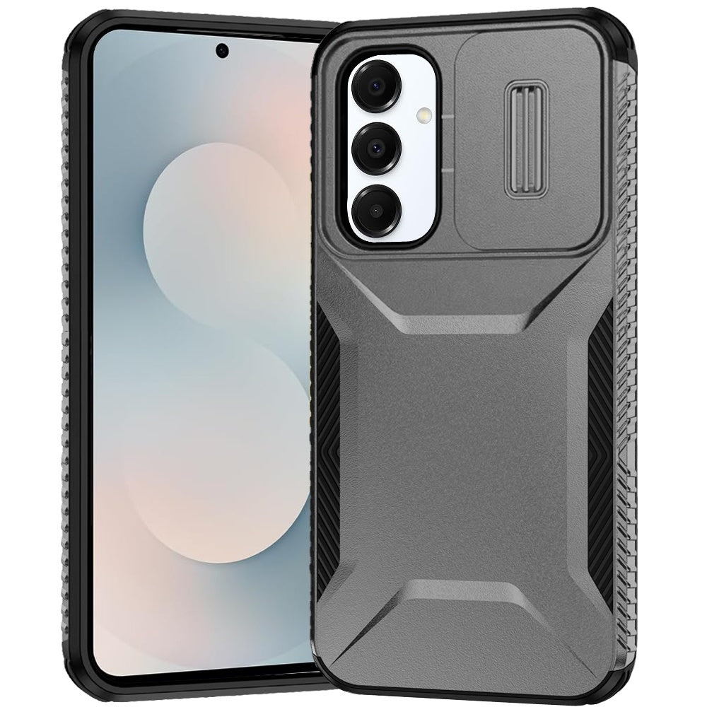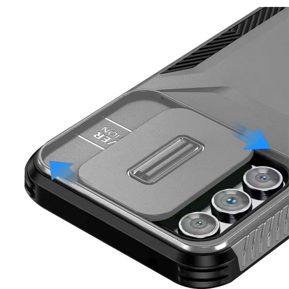 For Samsung S25 FE Case Rugged Side Grip Sliding Lens Cover + Tempered Glass