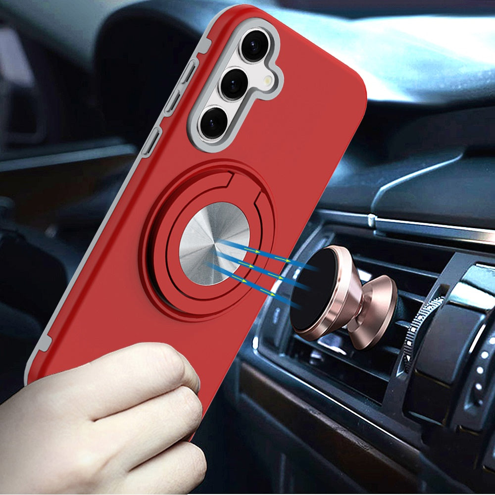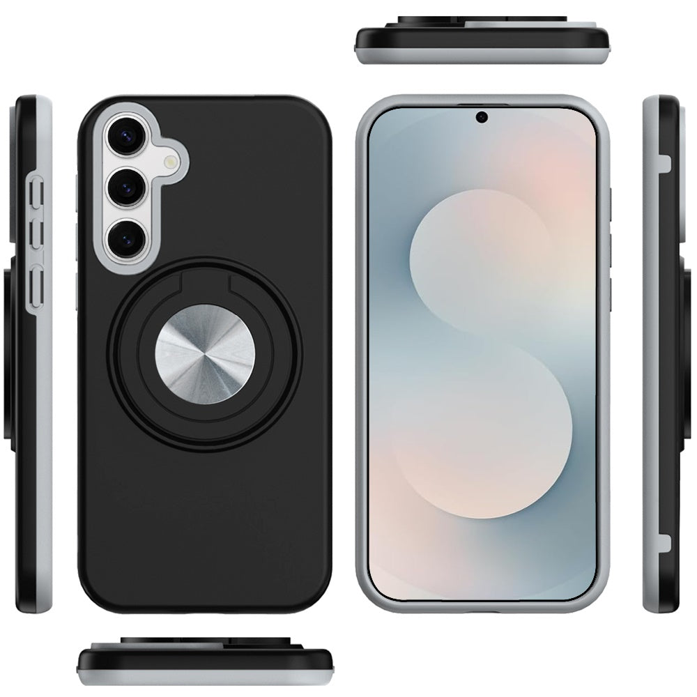 Solid Color Rugged Hybrid with Magnetic Ring Stand + Tempered Glass Screen Protector