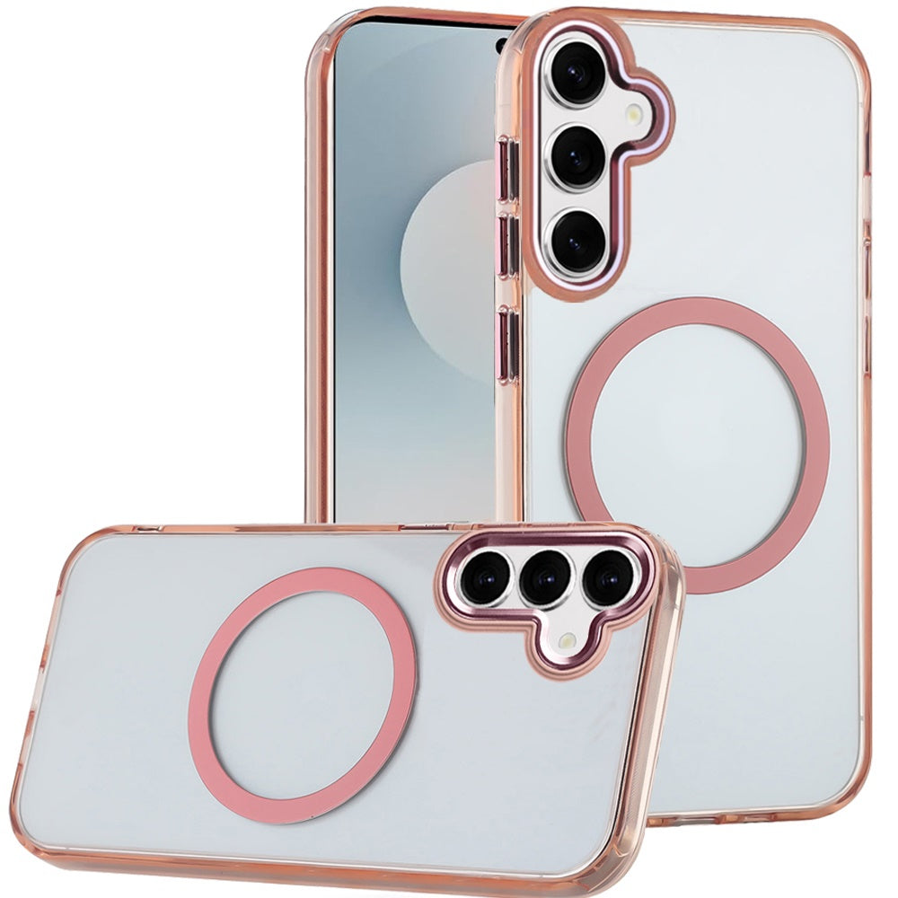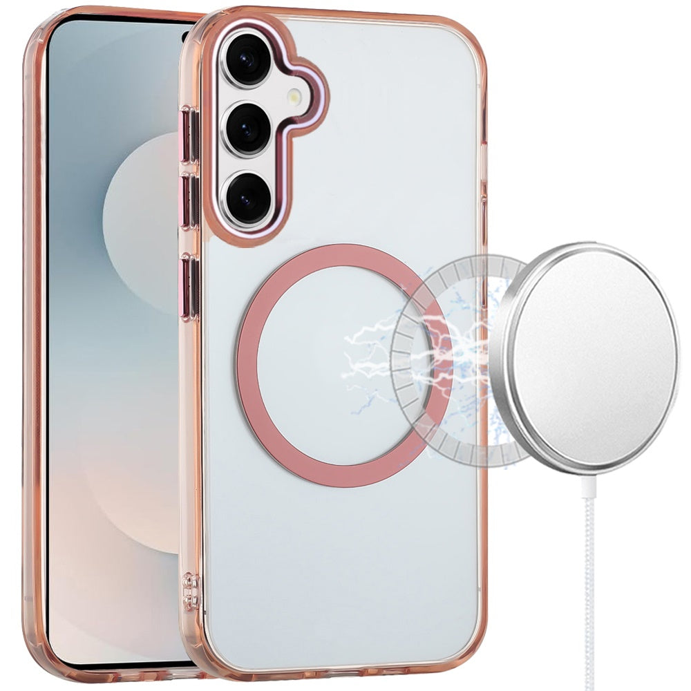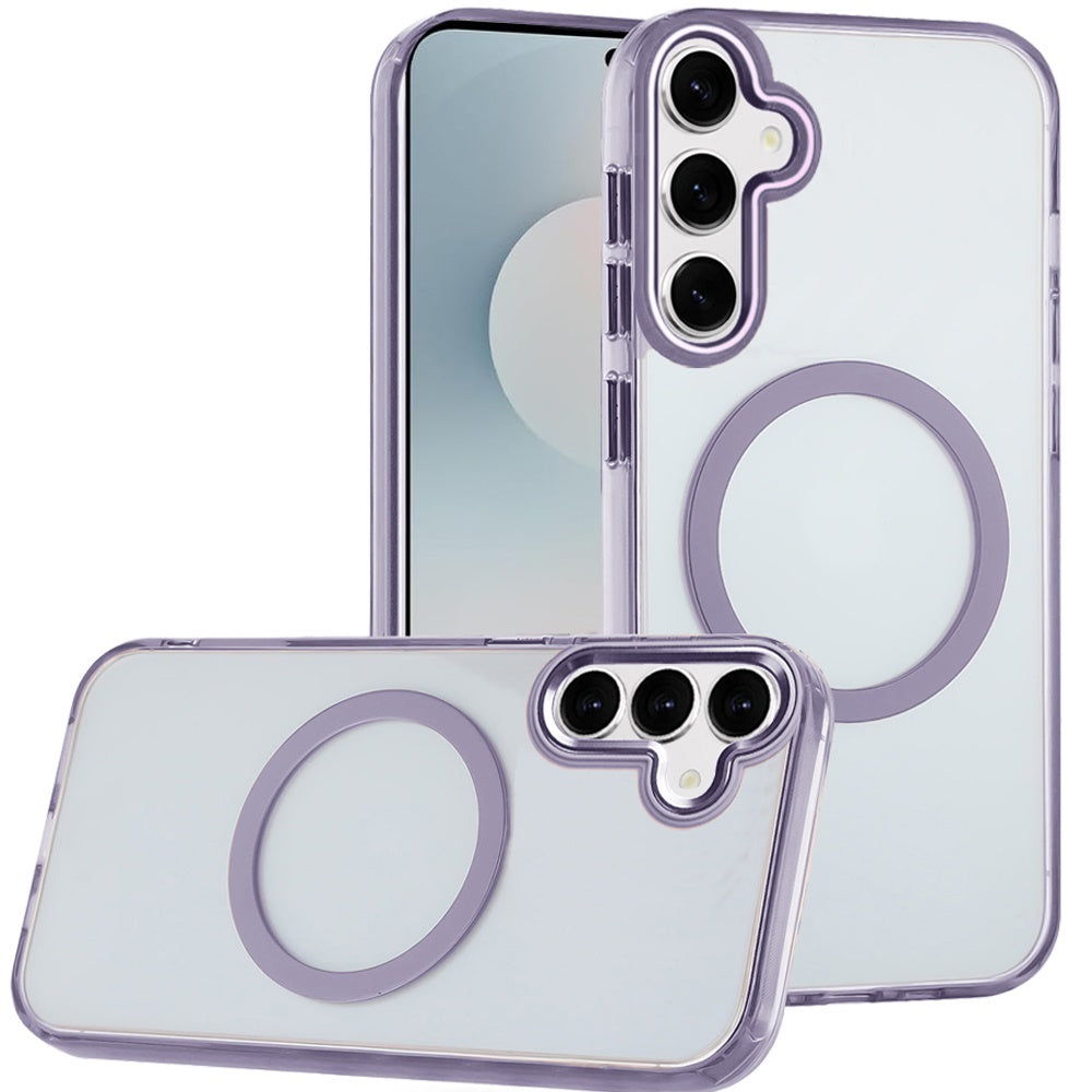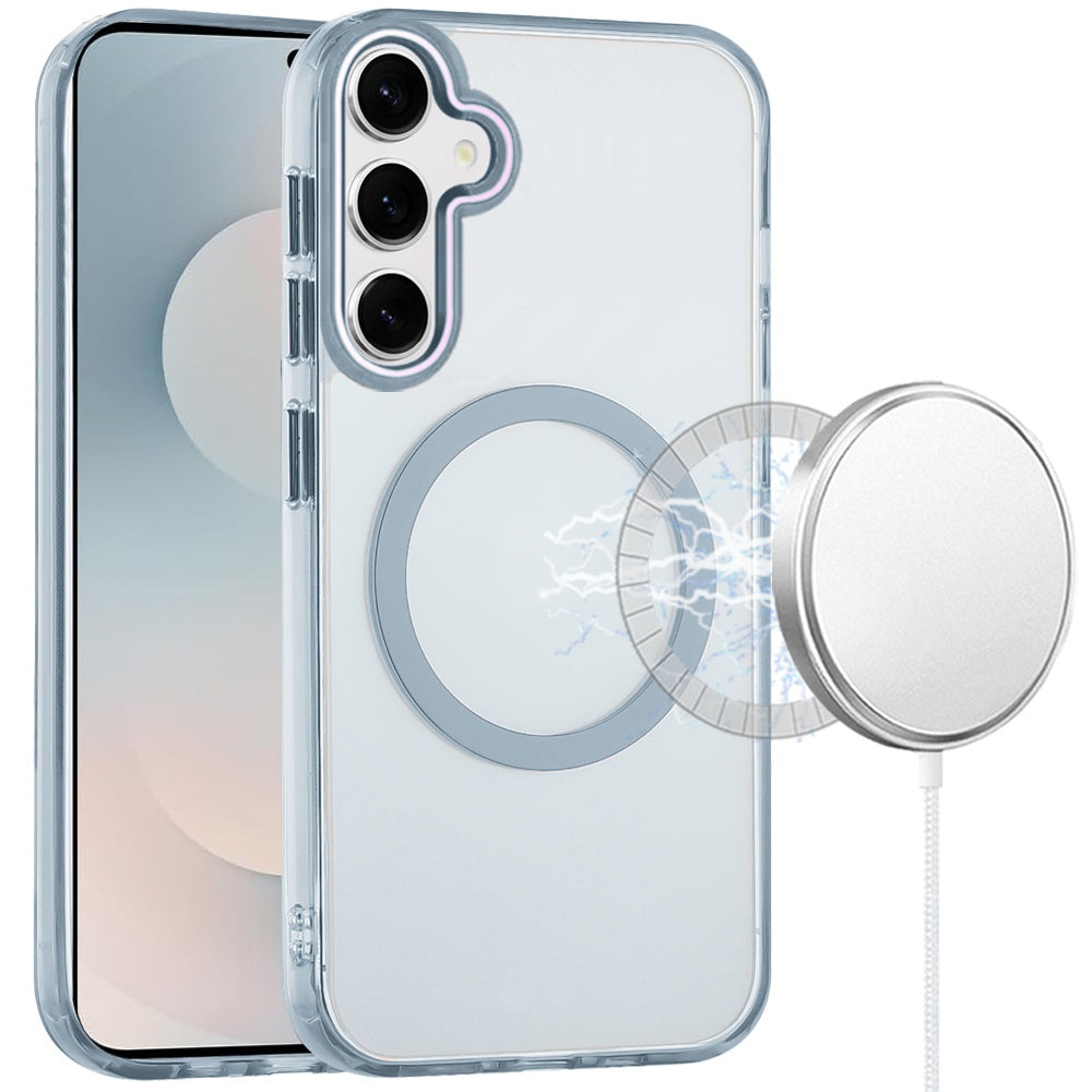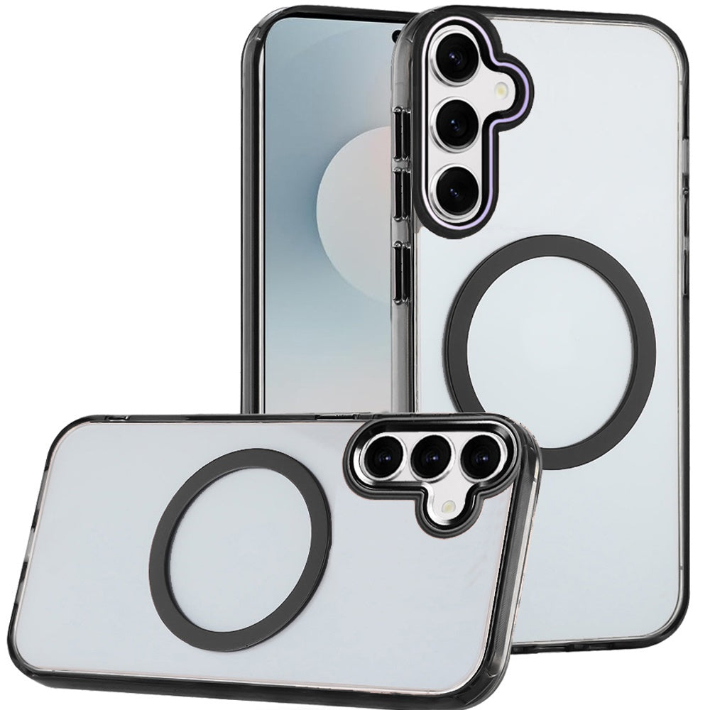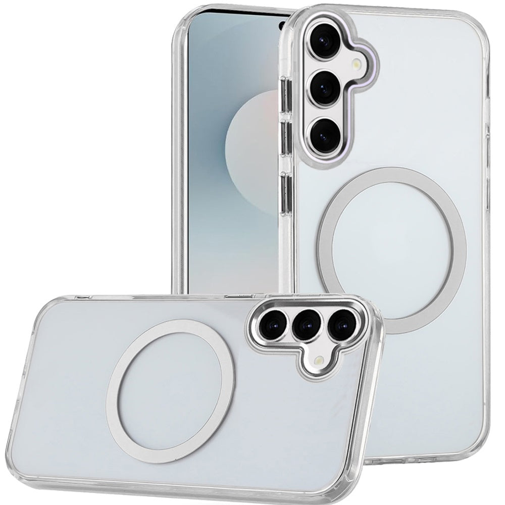 Trans-Clear Metal Buttons Magnetic Charging Phone Case + Tempered Glass Screen Protector