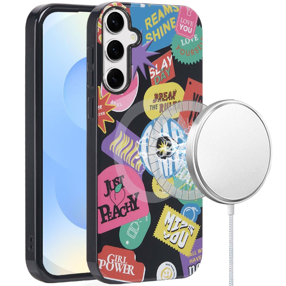 For Samsung S25+/S24+ Case Dual Layer TPU Design Magnetic Circle +Tempered Glass