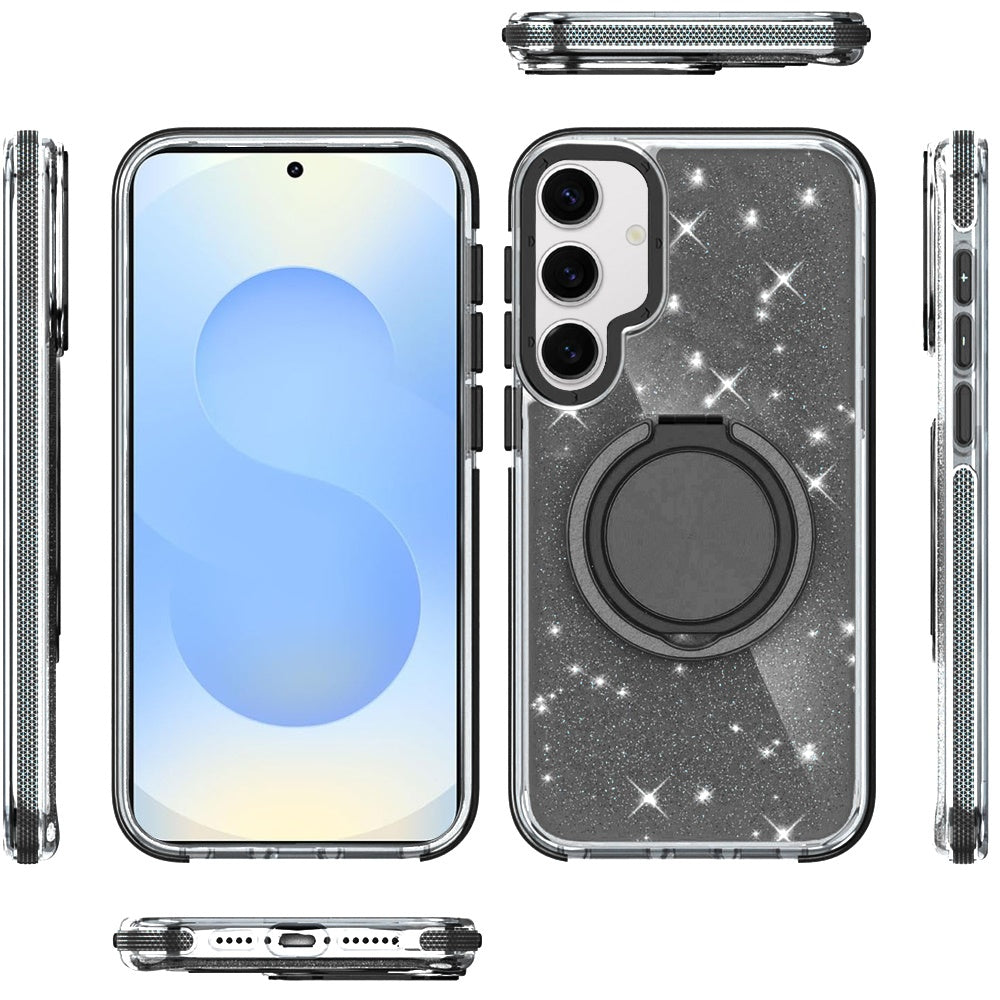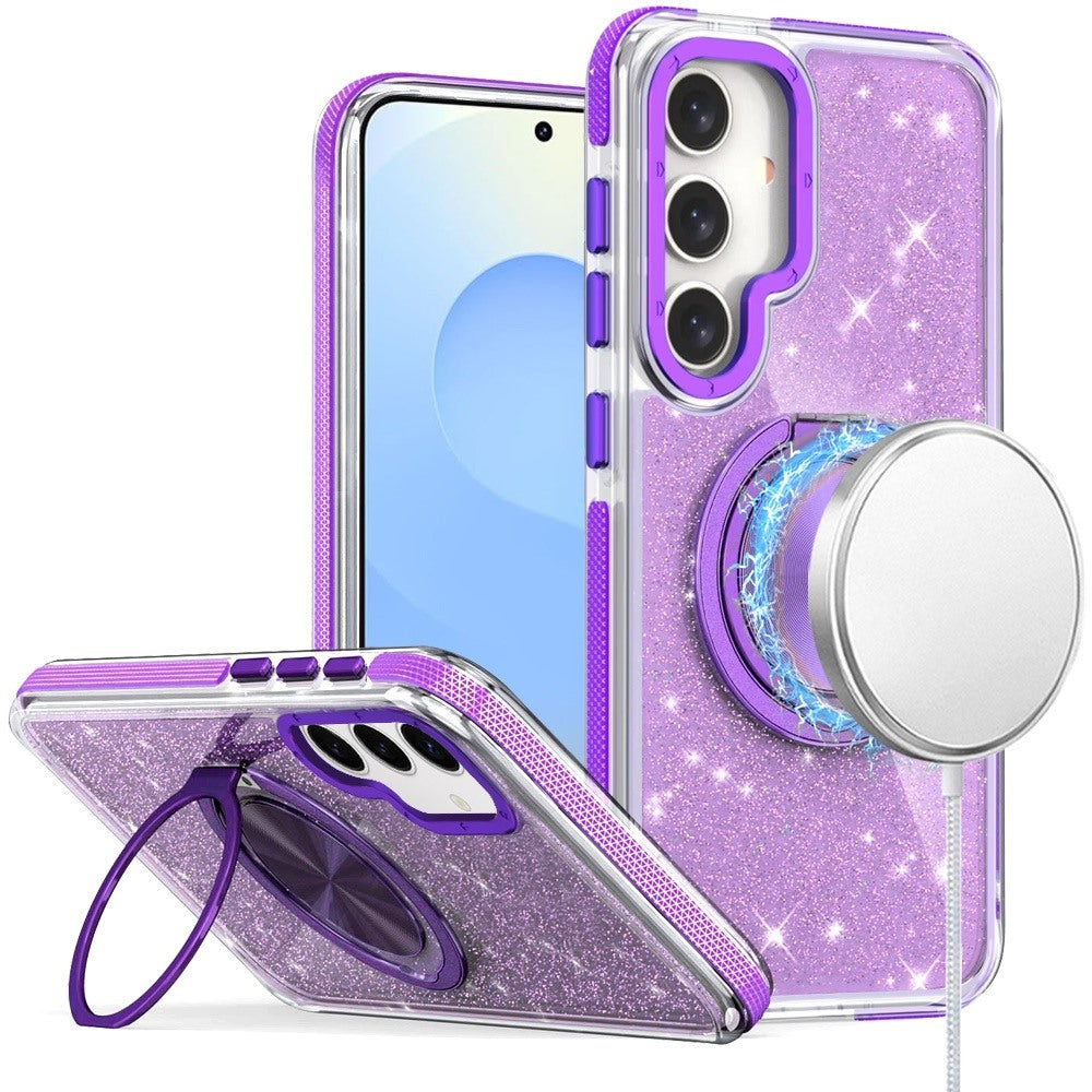 For Samsung S25+/S24+ Case Magnetic Circle Stand Full Glitter + Tempered Glass