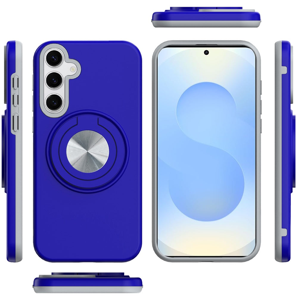 Solid Color Rugged Hybrid with Magnetic Ring Stand + Tempered Glass Screen Protector