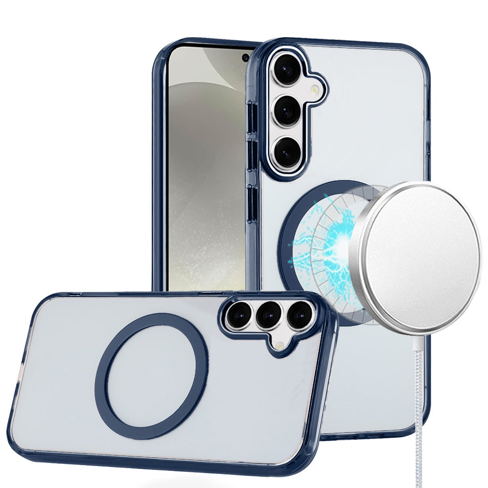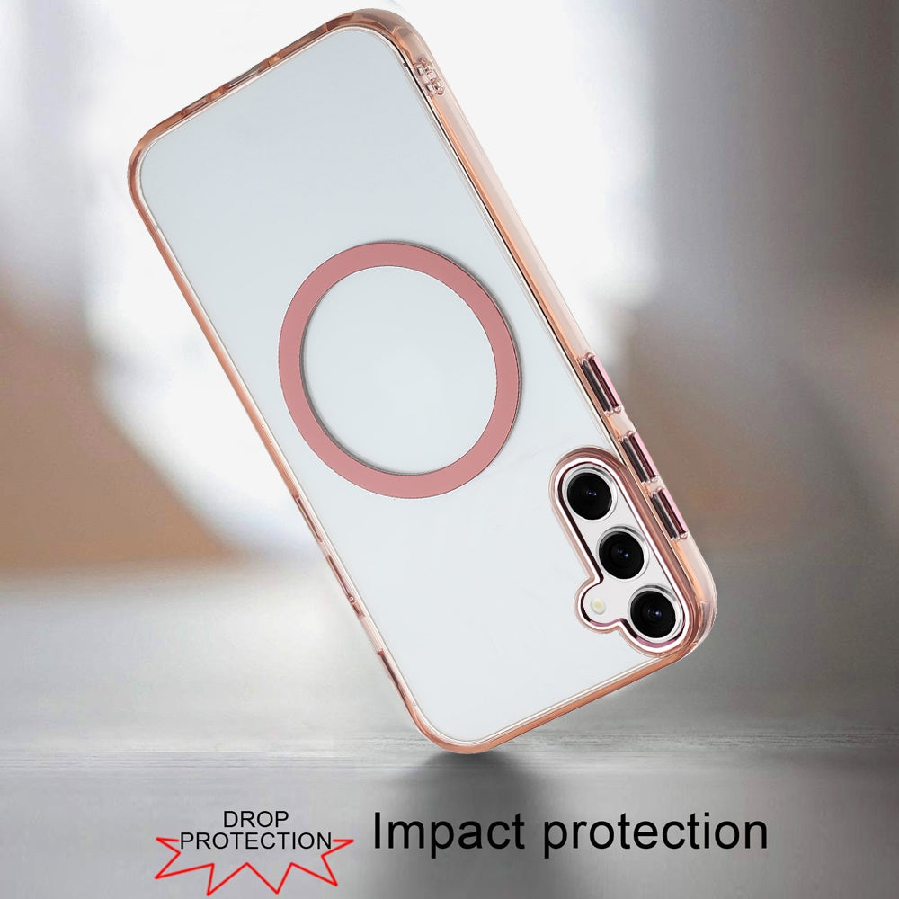 Trans-Clear Metal Buttons Magnetic Charging Phone Case + Tempered Glass Screen Protector