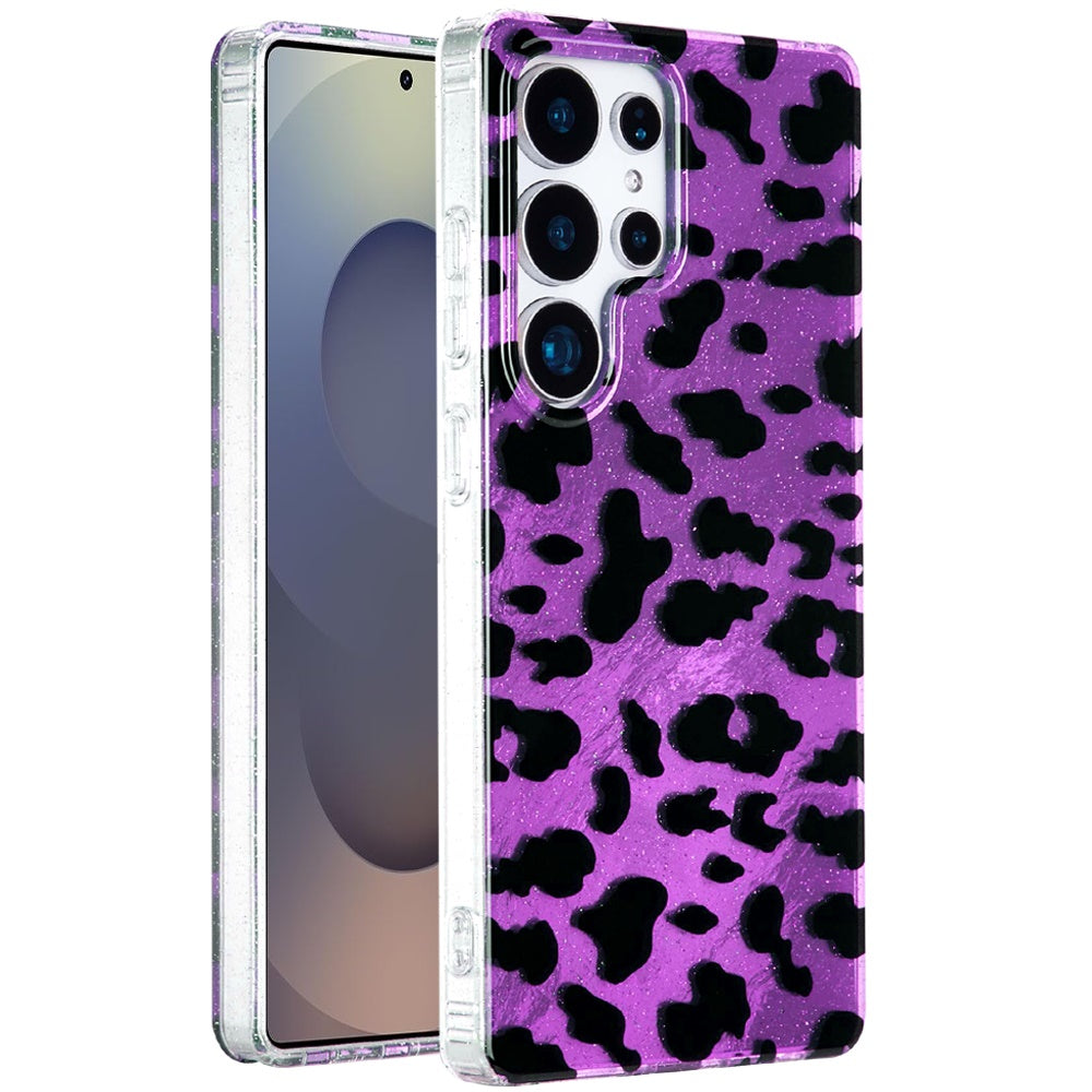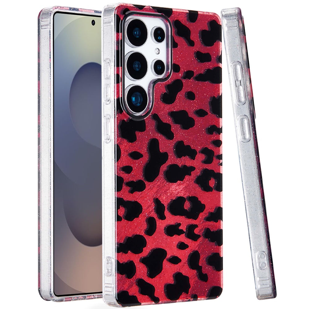 For Samsung S25 Ultra Case Glossy In Mold Design Print Glitter + Tempered Glass