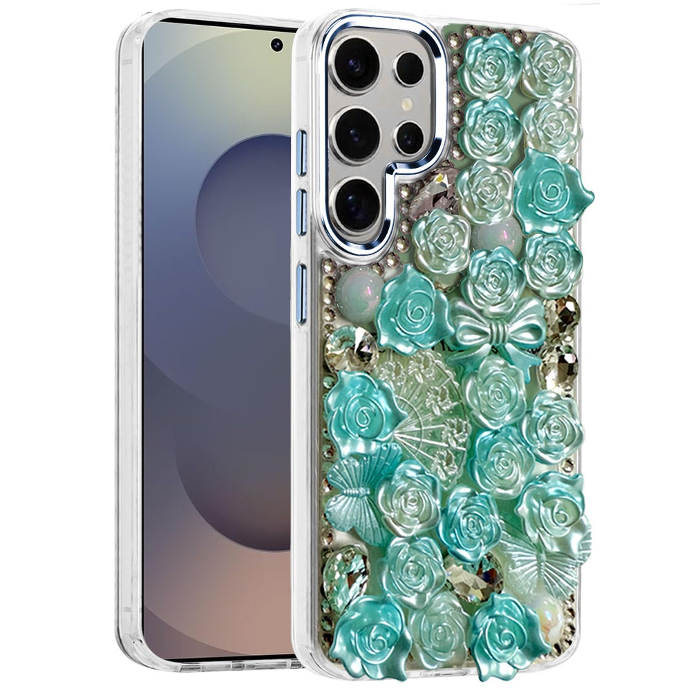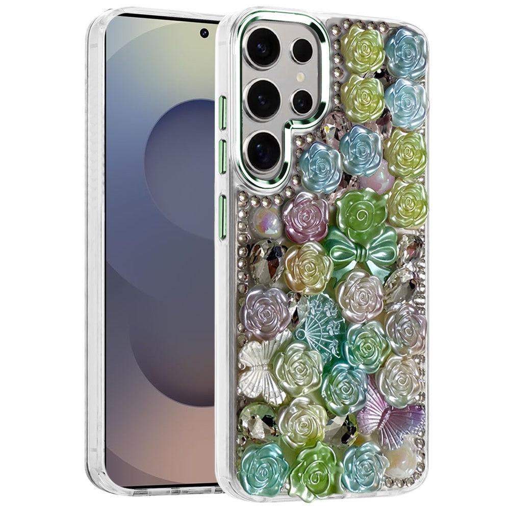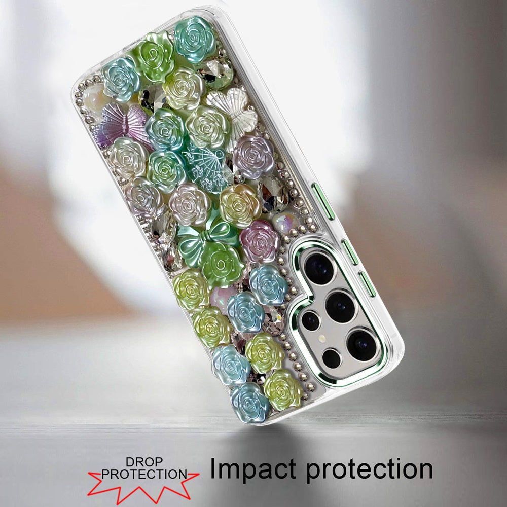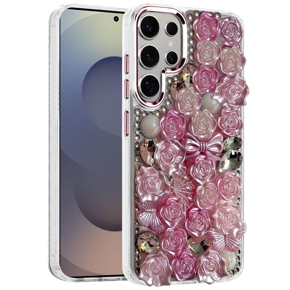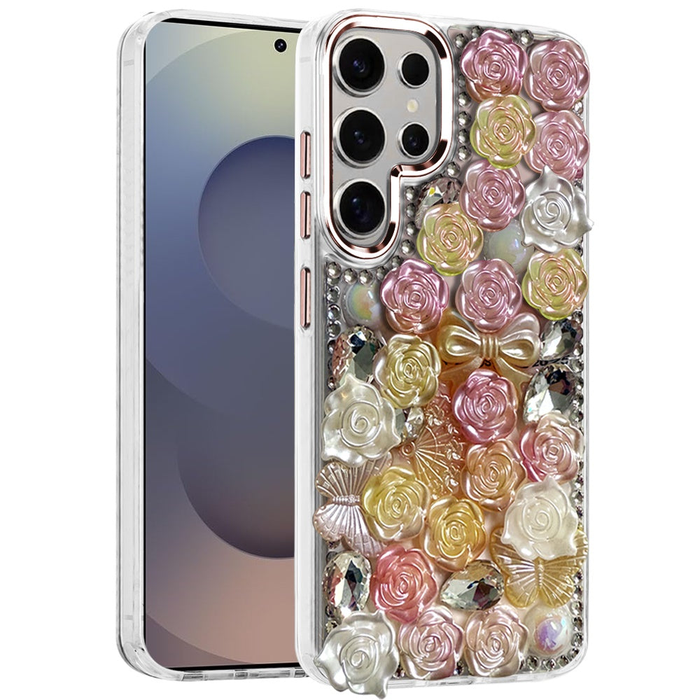 For Samsung S25 Ultra Case Roses Arrangement 3D Bling Cover + Tempered Glass