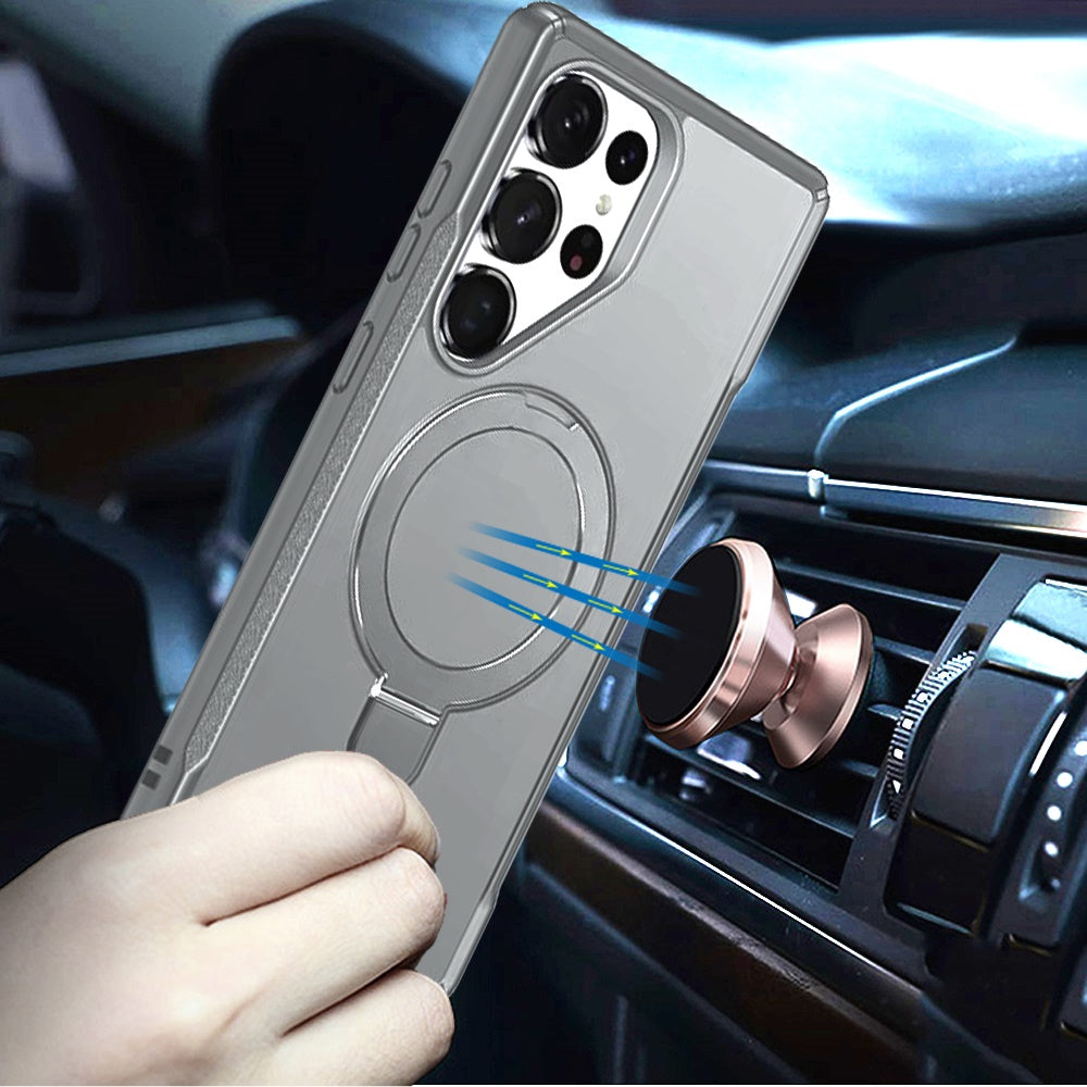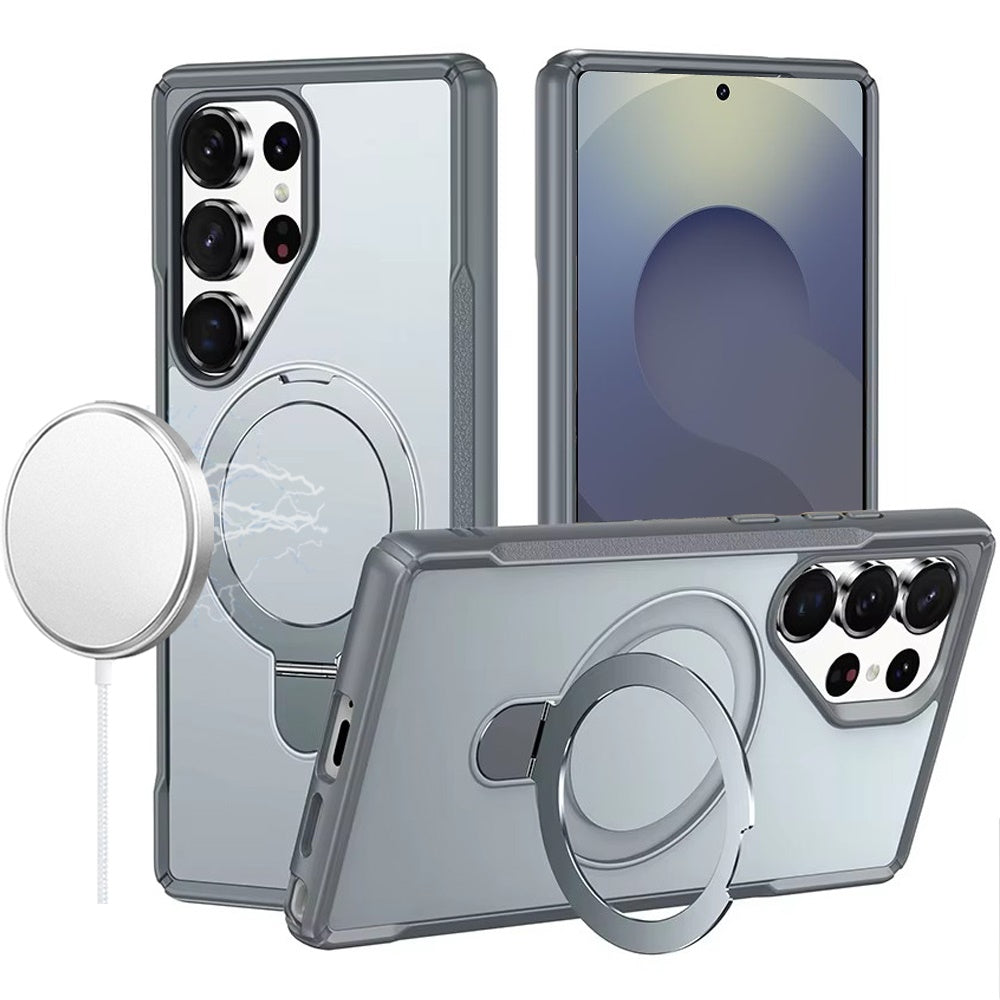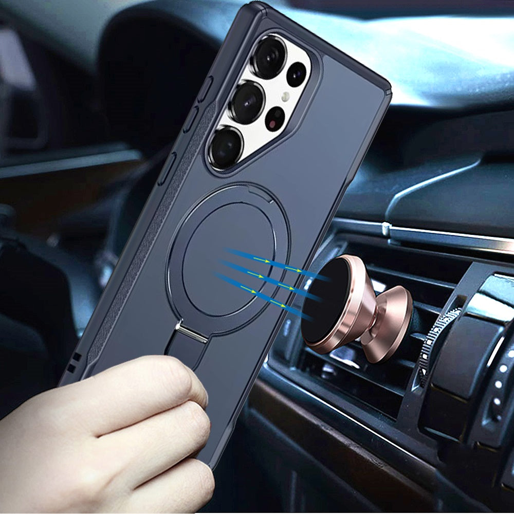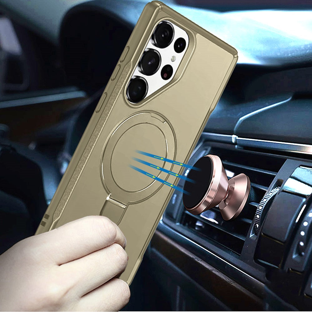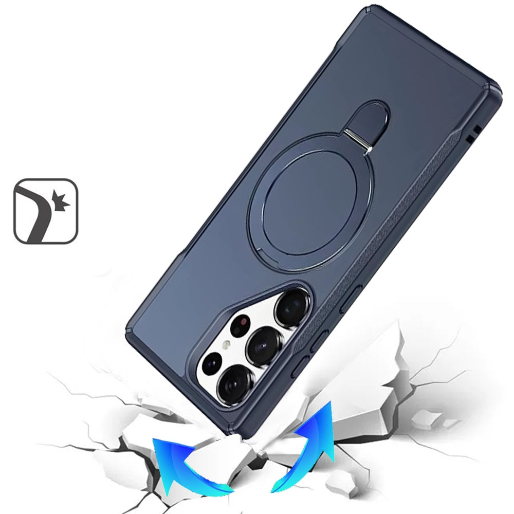 Shockproof Phone Cover with Magnetic Metal Circle Stand + Tempered Glass Screen Protector