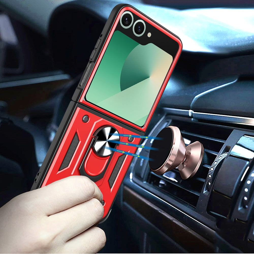 For Samsung Z Flip7 Case Camera Lens Cover Magnetic Ring Stand + Tempered Glass