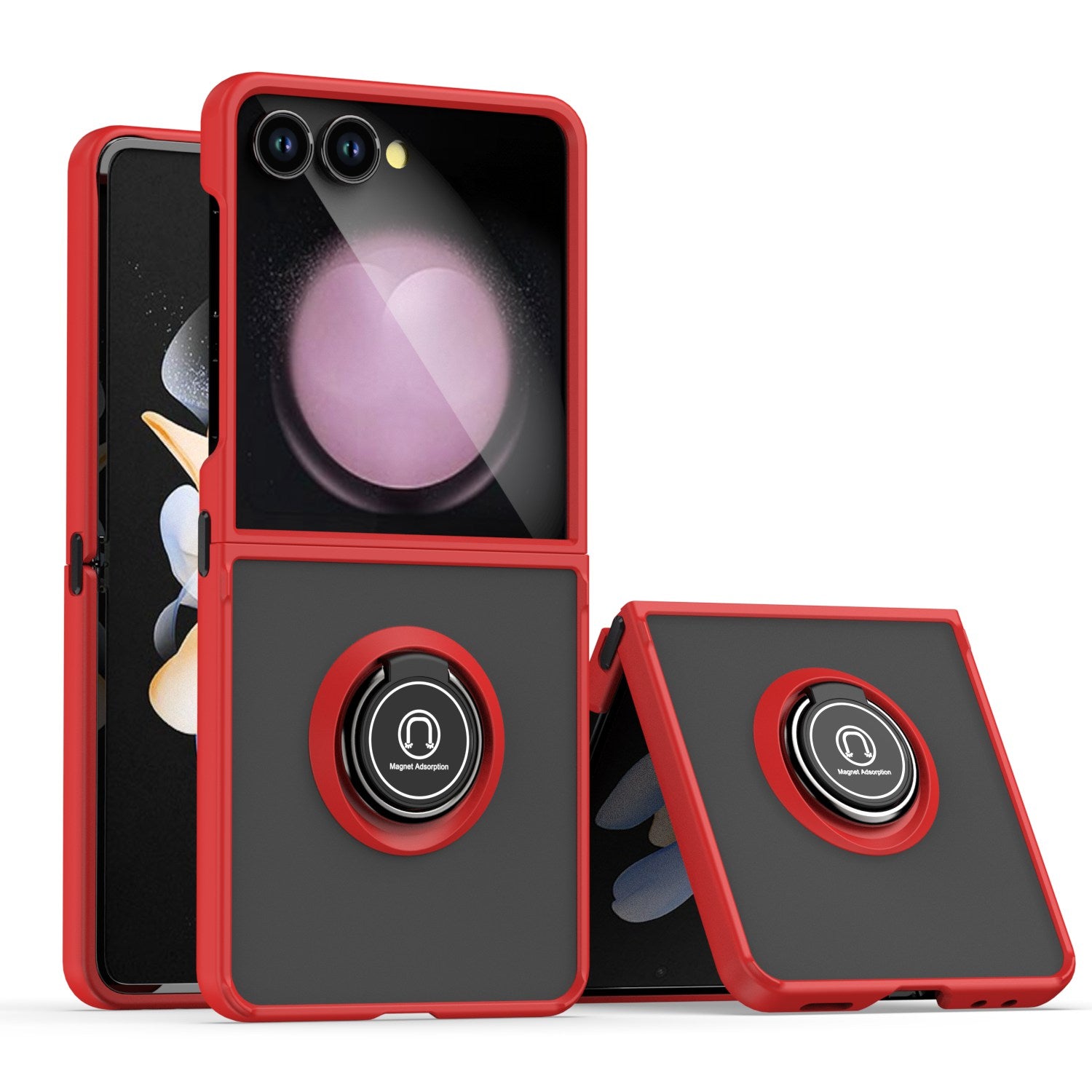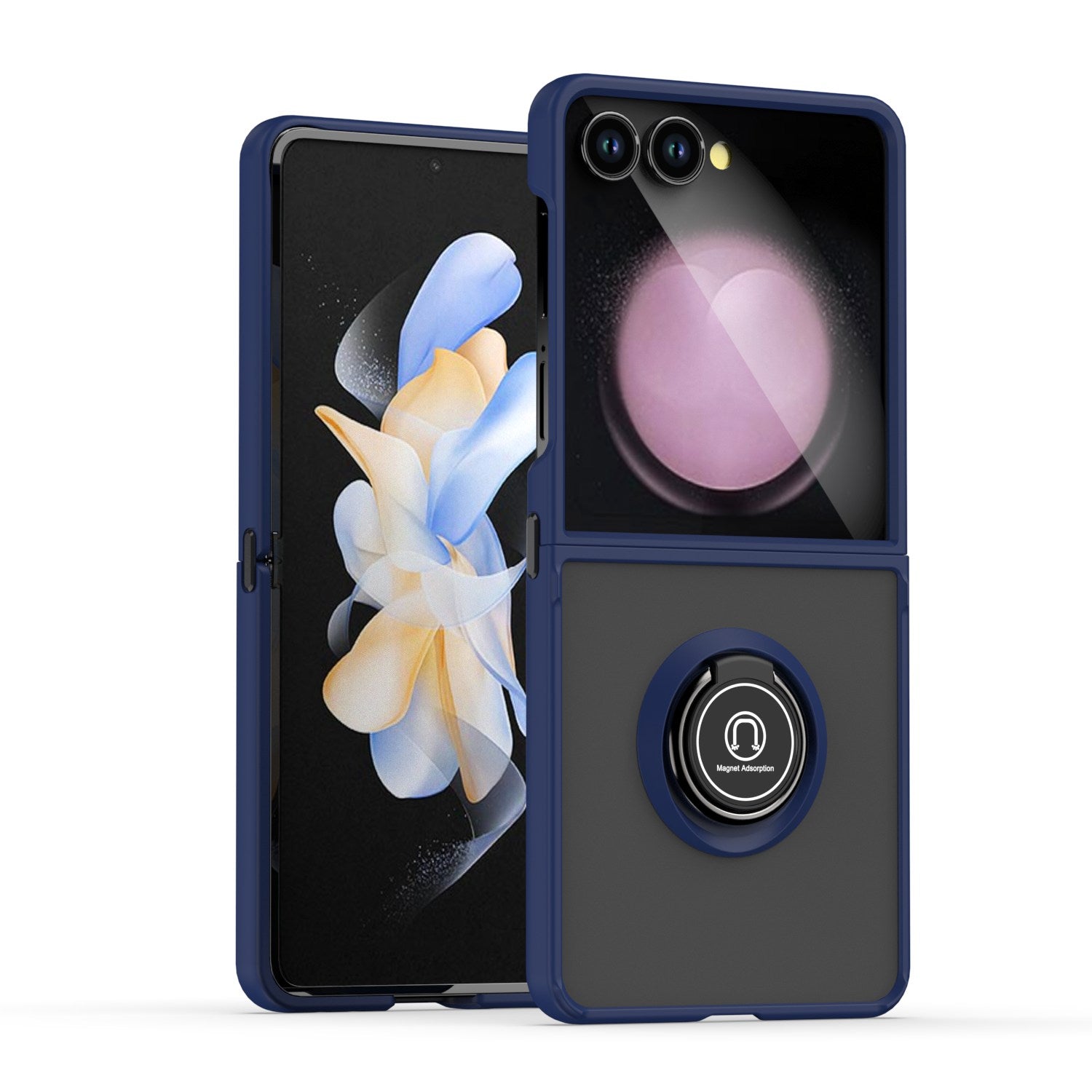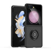 For Samsung Z Flip7 Case Metal Ring Stand Cover w/ Frosted Back + Tempered Glass