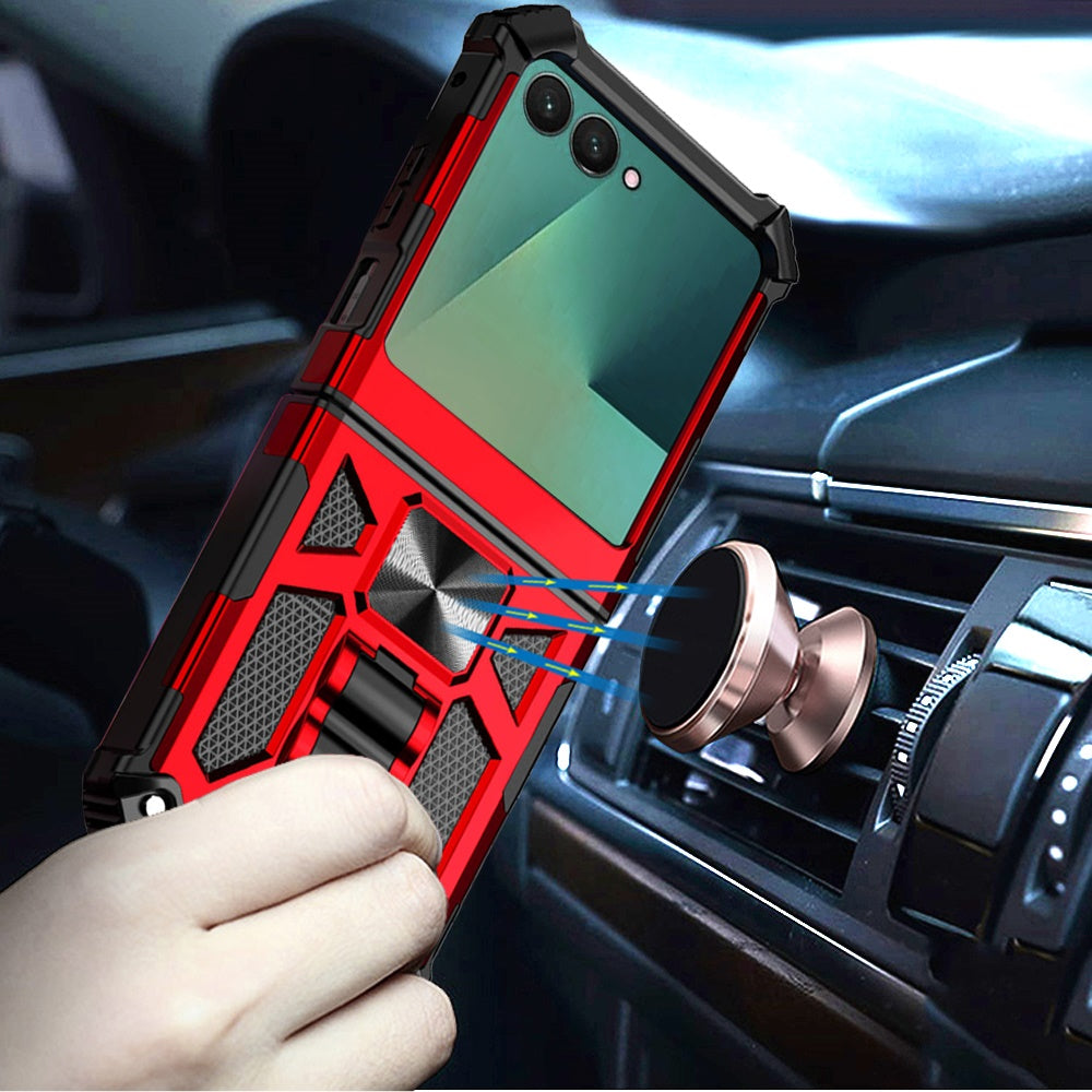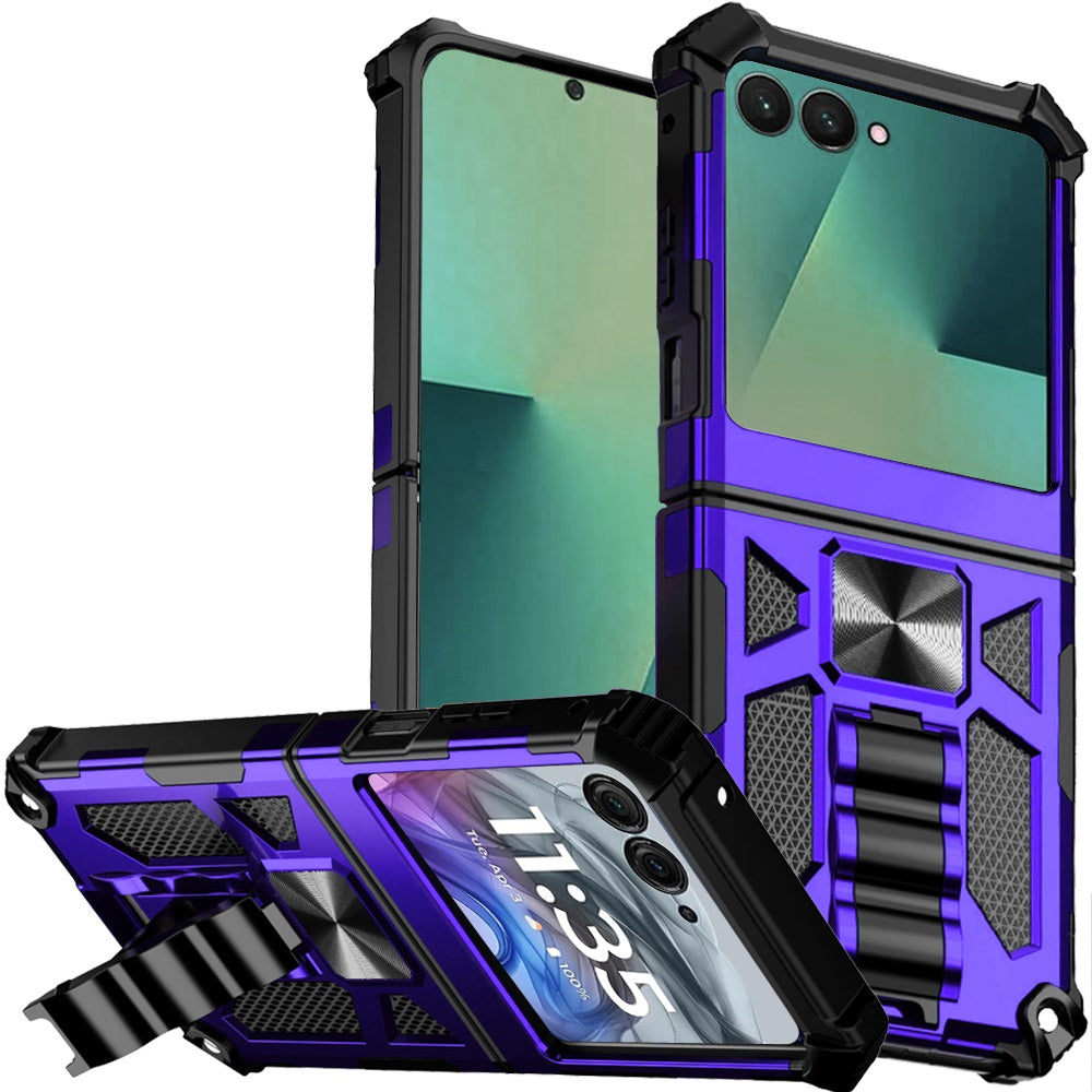 Shockproof Modern Style Case with Pop-out Stand and Metal Plate + Front Screen Tempered Glass Screen Protector