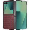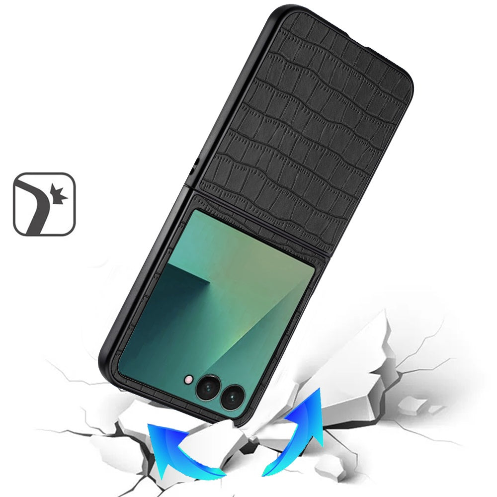 For Samsung Z Flip7 Case Vegan Leather Croc Design Hard Cover + Tempered Glass