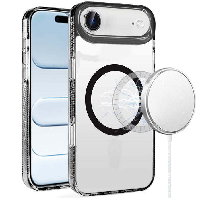 For iPhone Air Case Magnetic Circle Grip Sides Clear Hybrid + Tempered Glass