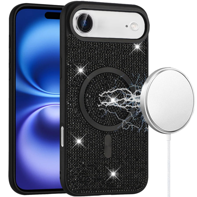 For iPhone Air Case Magnetic Circle Full Bling Rhinestone Cover + Tempered Glass
