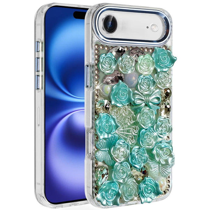 For iPhone Air Case Full Roses Arrangement 3D Bling Phone Cover + Tempered Glass