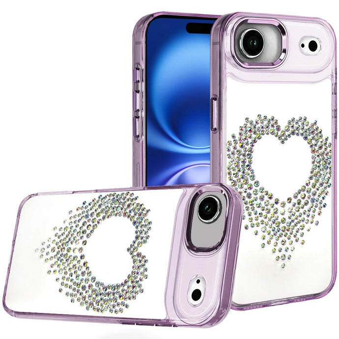 For iPhone Air Case Heart Shaped Rhinestones with Chrome Edges + Tempered Glass