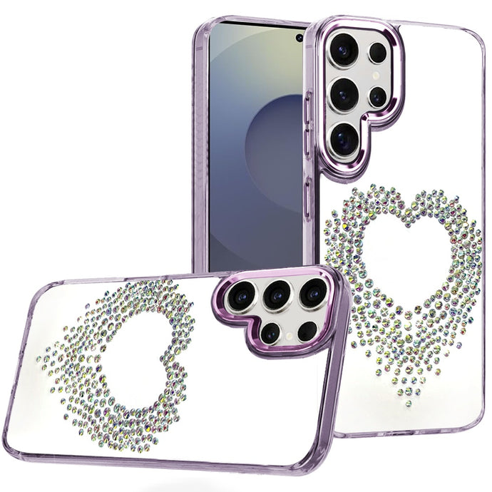 For Samsung S25 Ultra Case Heart Shaped Rhinestones Clear Cover + Tempered Glass