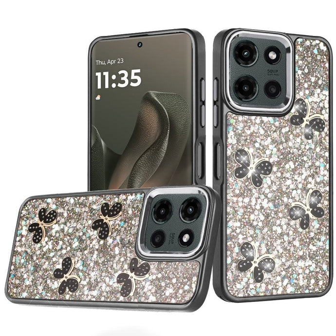 For Motorola Edge 2025 Case Full Glitter Flakes with Cute Butterflies Cover