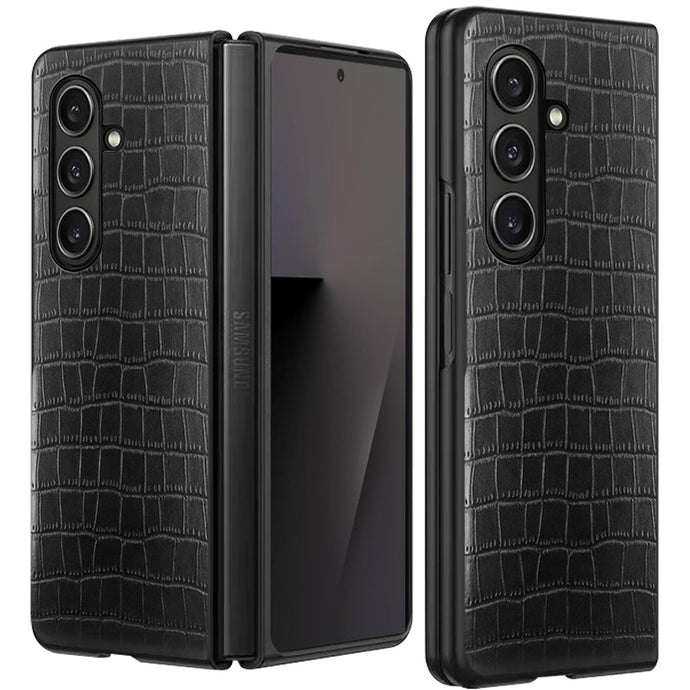 For Samsung Z Fold7 Case Vegan Leather Croc Design Hard Cover + Tempered Glass