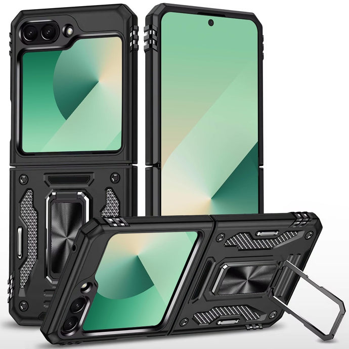 For Samsung Z Flip7 Case Shockproof Modern w/ Stand Metal Plate + Tempered Glass