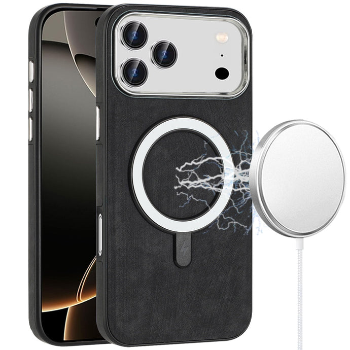 For iPhone 17 PRO Case Soft Vegan Leather Magnetic Circle Cover + Tempered Glass