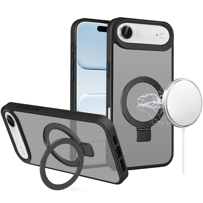 For iPhone Air Case Smooth-Touch Magnetic Circle w/ Metal Stand + Tempered Glass