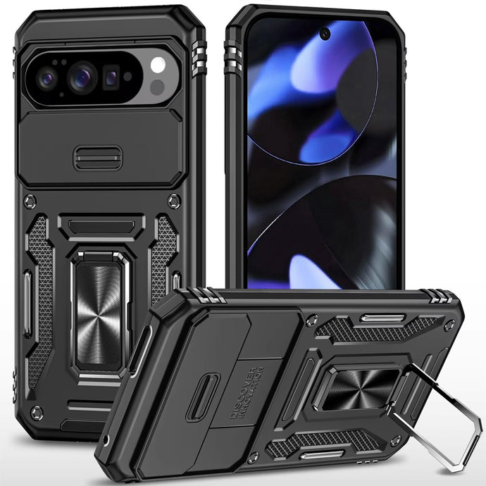 For Google Pixel 10/10 Pro Case Sliding Lens with Metal Stand + Tempered Glass