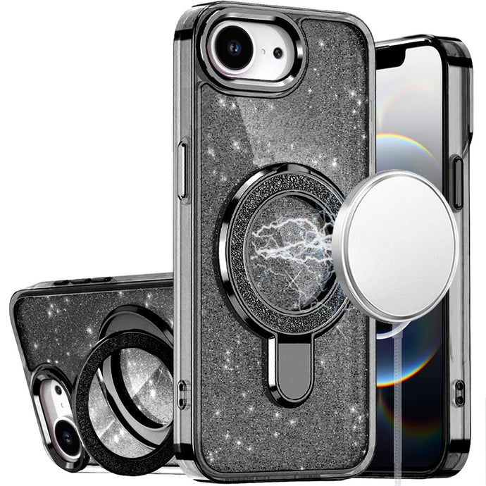 For iPhone 16e Case Translucent Full Glitter Magnetic Circle + Tempered Glass