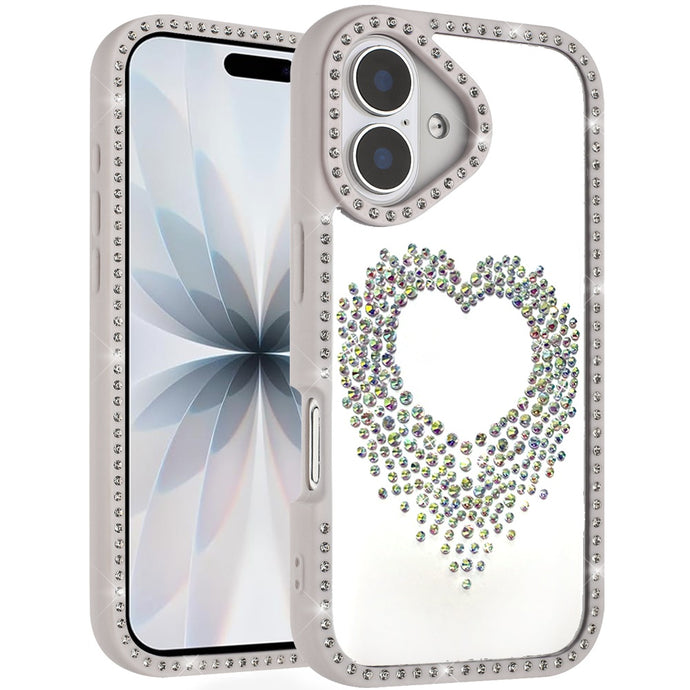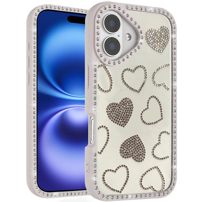 For iPhone 17 Case Rhinestone Hearts with Bling Around Border + Tempered Glass