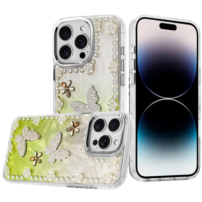 For iPhone 14 PRO MAX 6.7 in.Case Epoxy Glitter with 3D Beaded Butterflies Cover