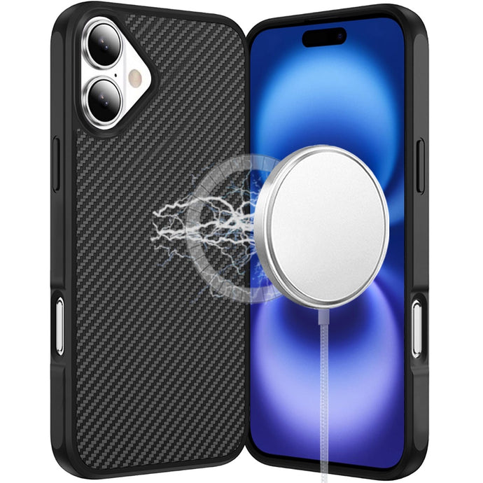 For iPhone 17 Case Carbon Fiber Print Hidden Magnetic Circle + Tempered Glass