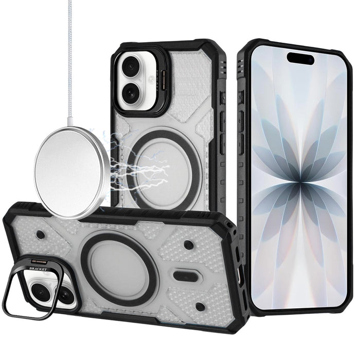 For iPhone 17 Case Rugged Camera Stand with Magnetic Circle + Tempered Glass