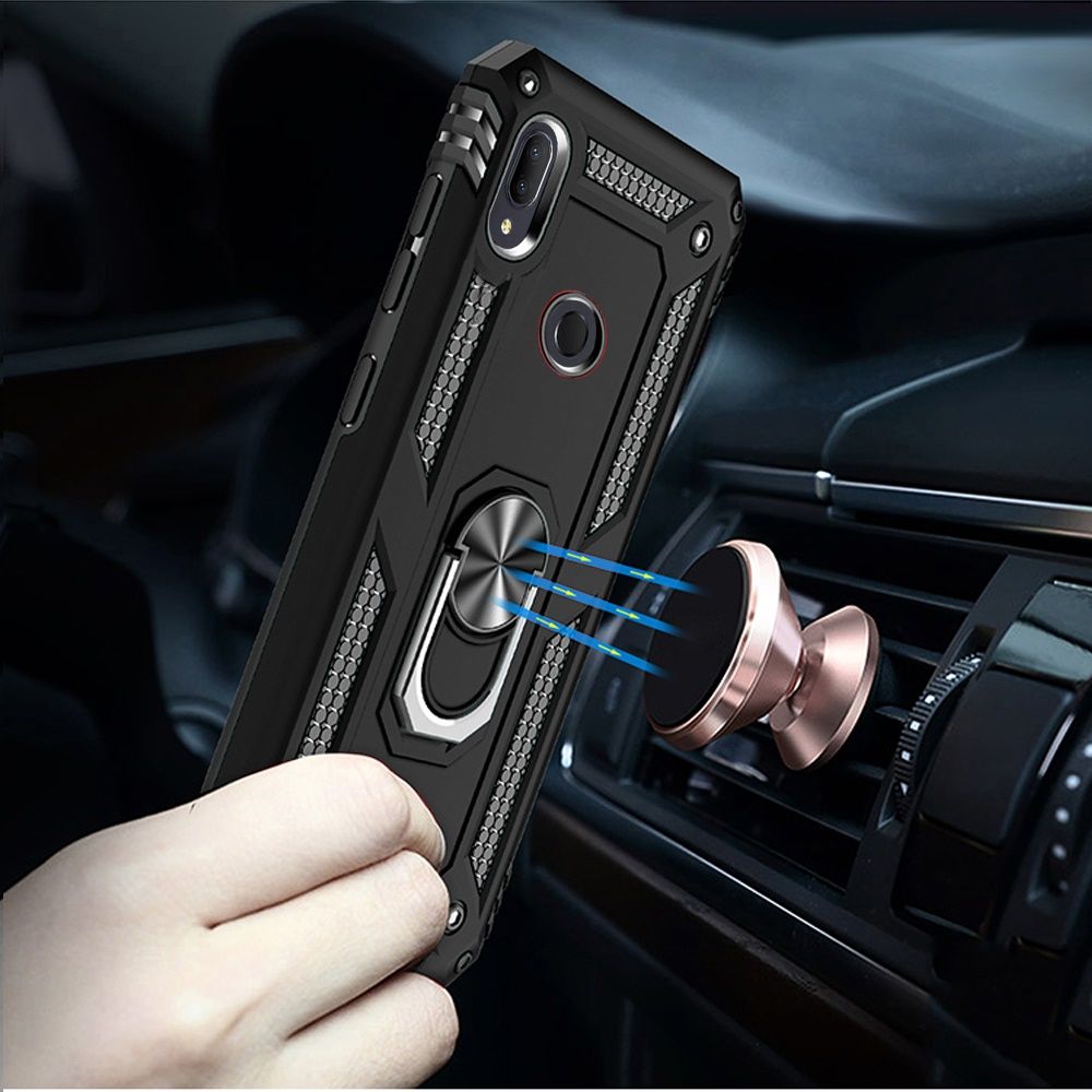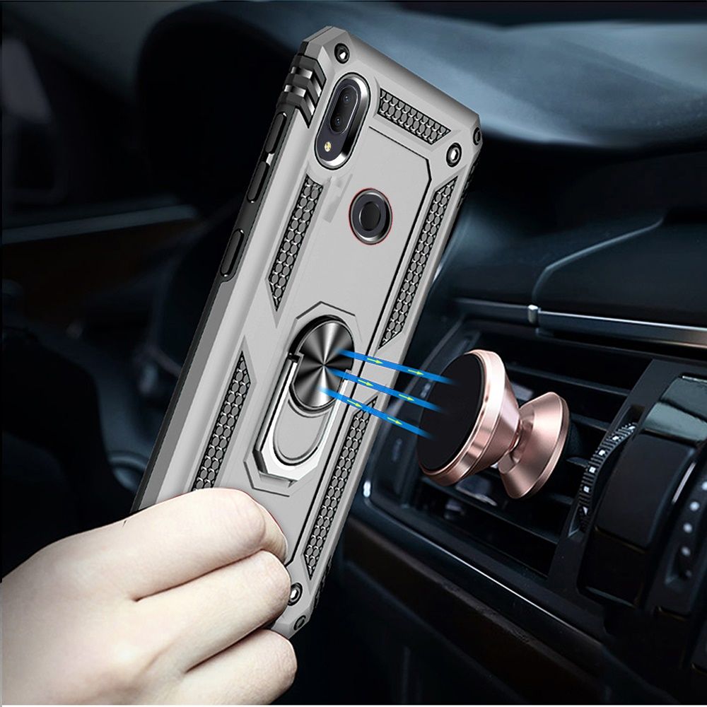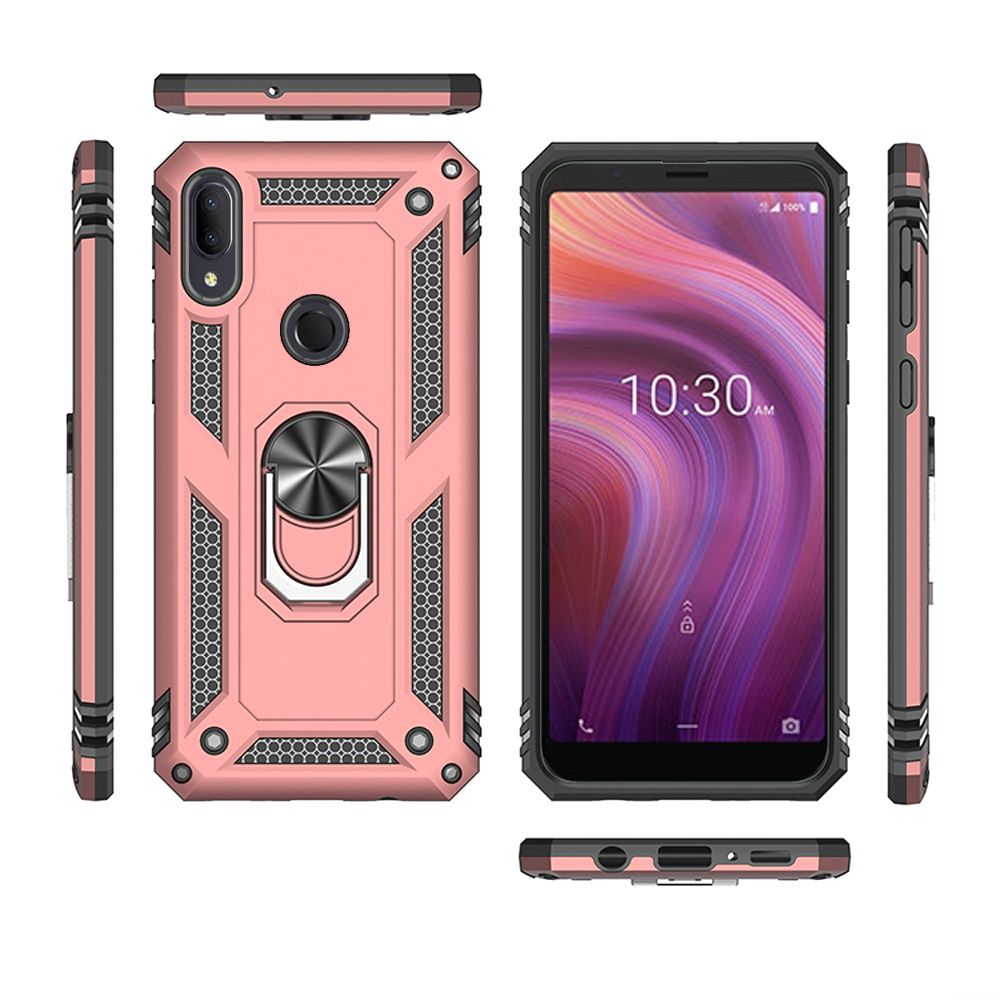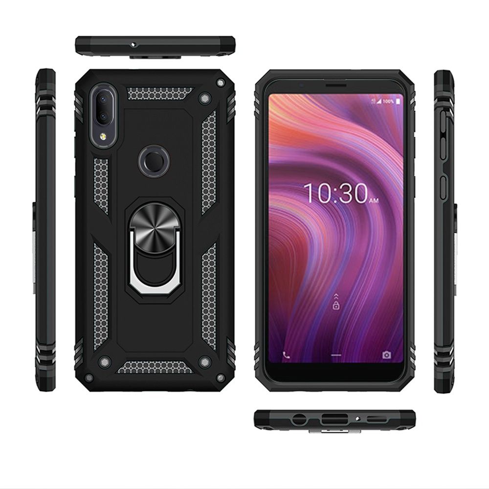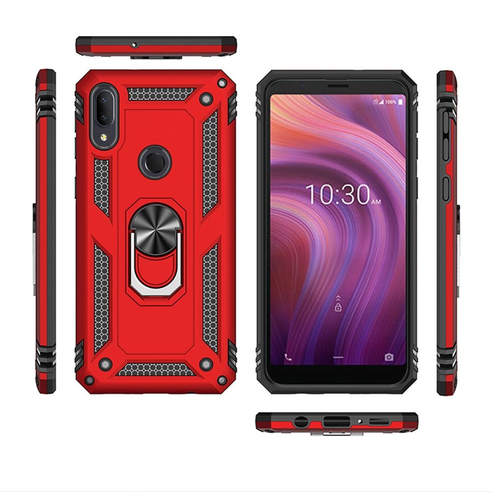 For Alcatel 3V (2019) Magnetic Ring Kickstand Hybrid Case Cover