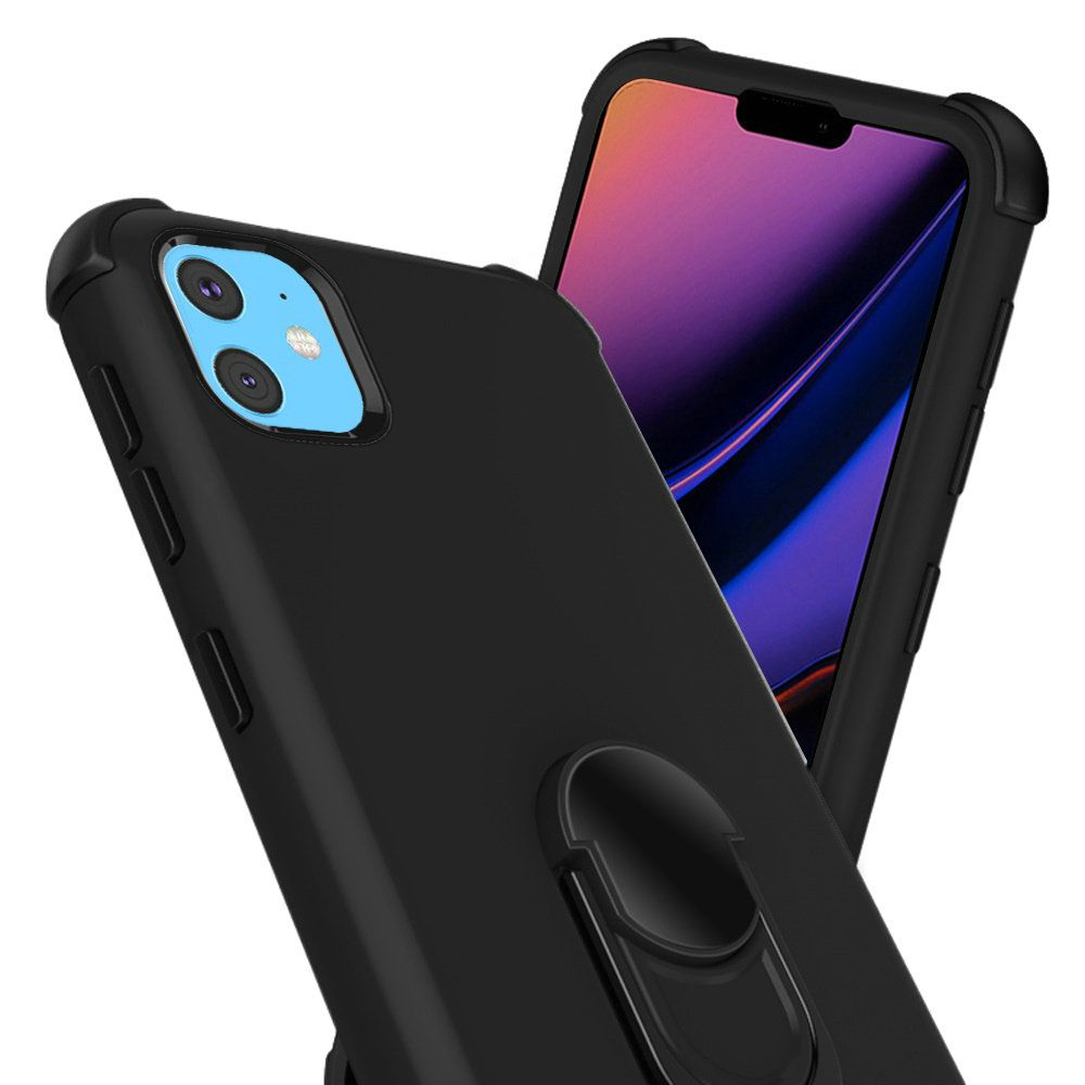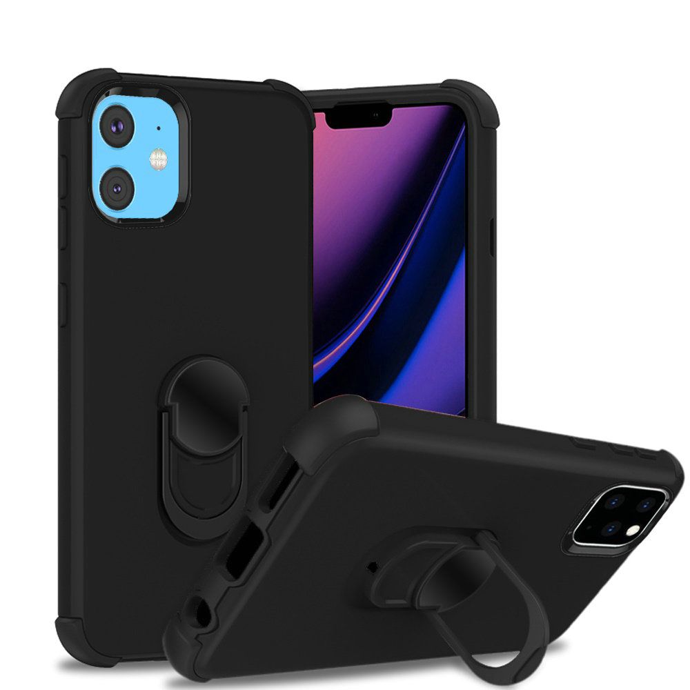 For Apple iPhone 11 (XI6.1) 360 degree King Ring Stand Hybrid w/ Raised Edges