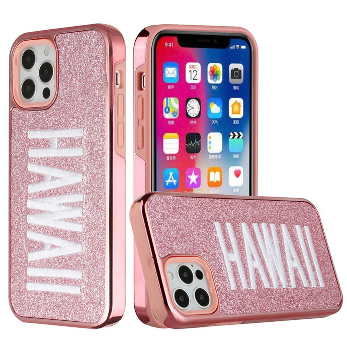 For Apple iPhone 11 Embroidered Text Bling Glitter Chrome Hybrid Phone Case