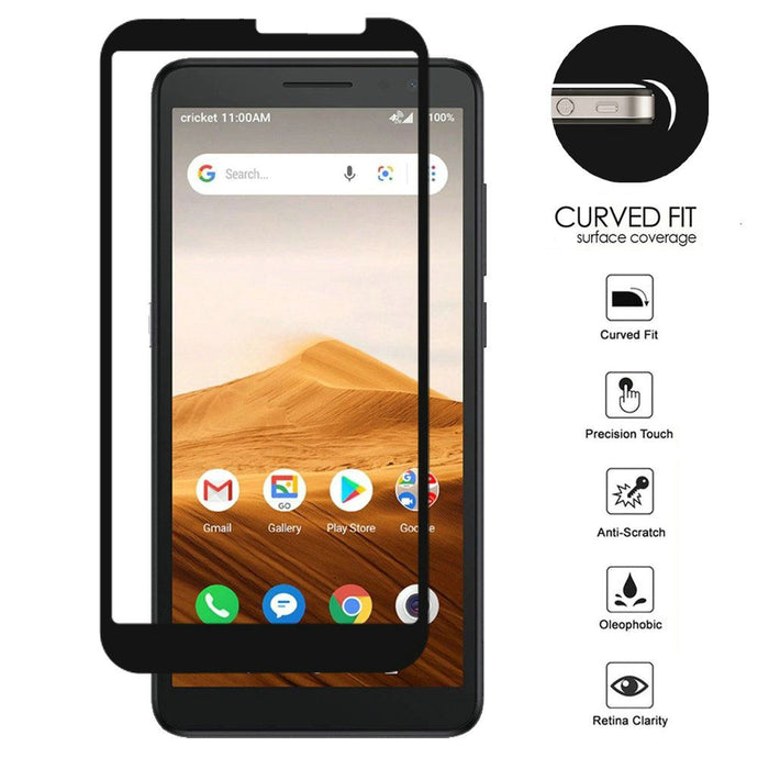 For Alcatel Apprise Bulk White Paper Card Package Black edged Tempered Glass (Black)