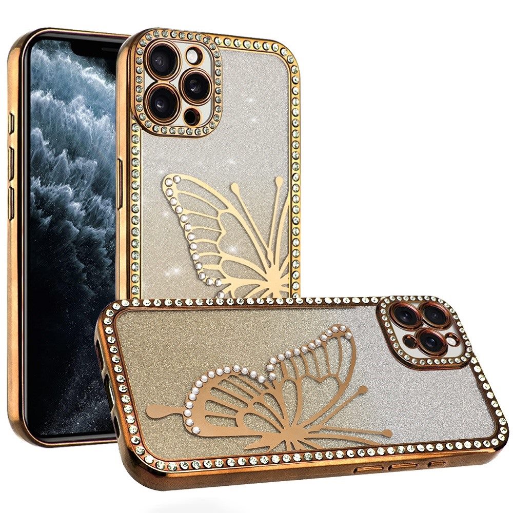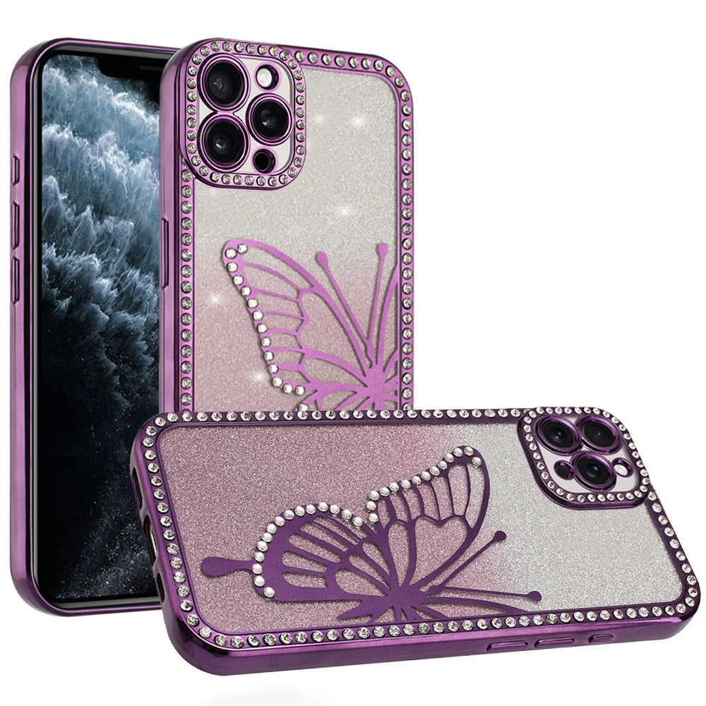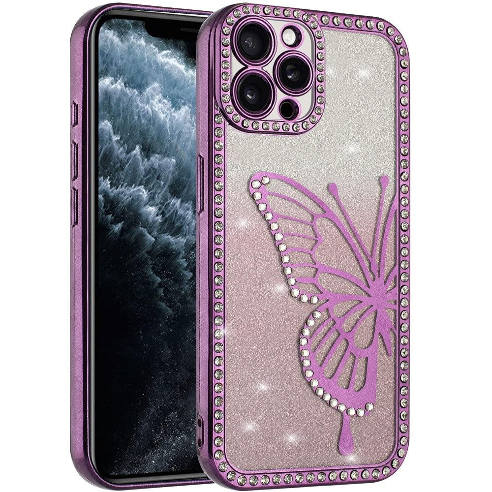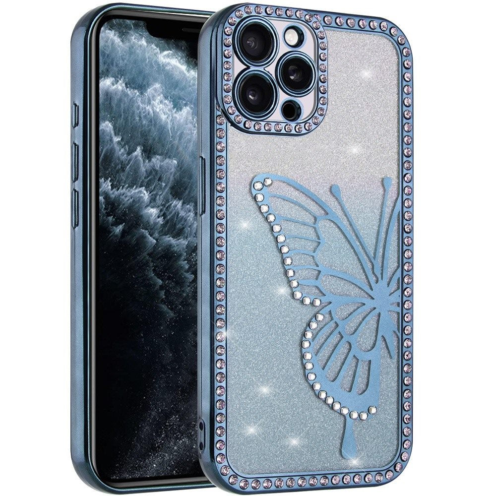 Large Bling Butterfly Full Glitter Phone Case + Tempered Glass Screen Protector