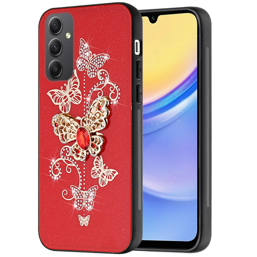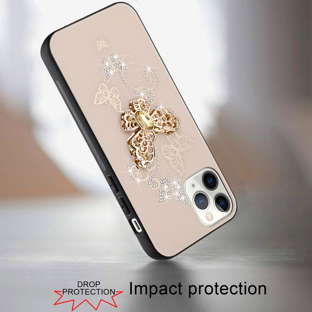 Rhinestone Bling Décor Glitter Fashion Phone Case + Tempered Glass Screen Protector