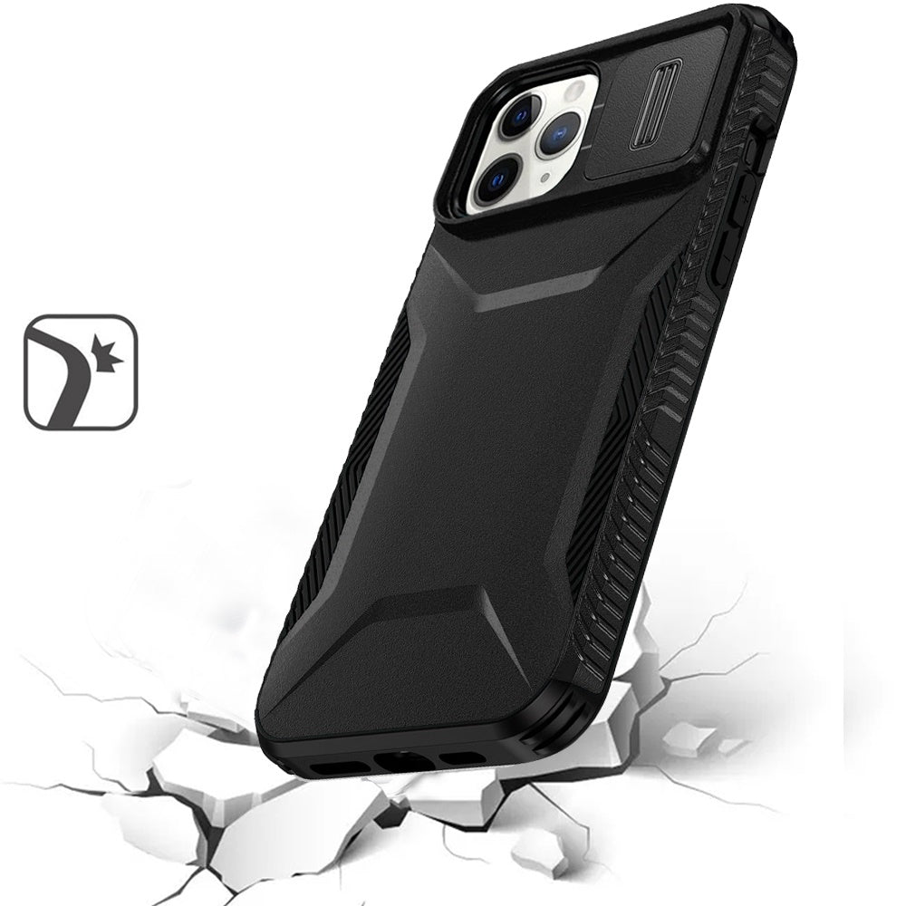 Ultimate Rugged Grip Design Hybrid Phone Case with Camera Lens Covering + Tempered Glass Screen Protector