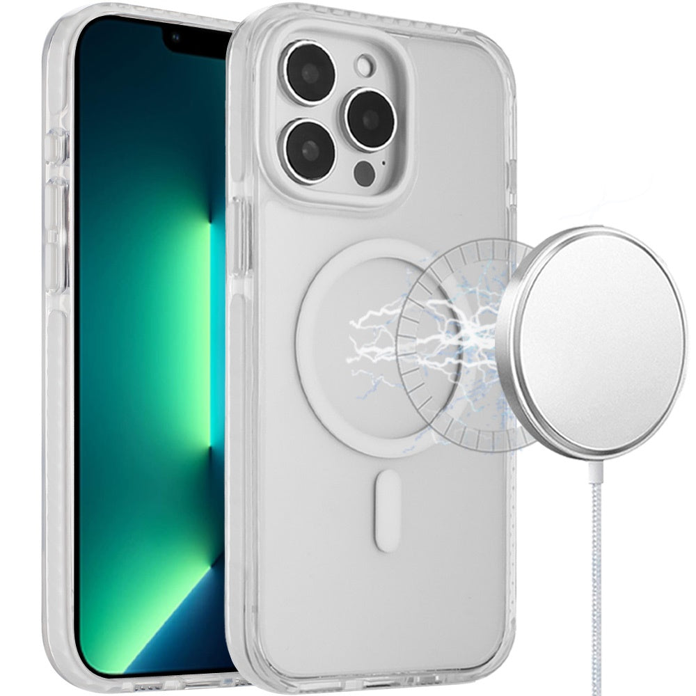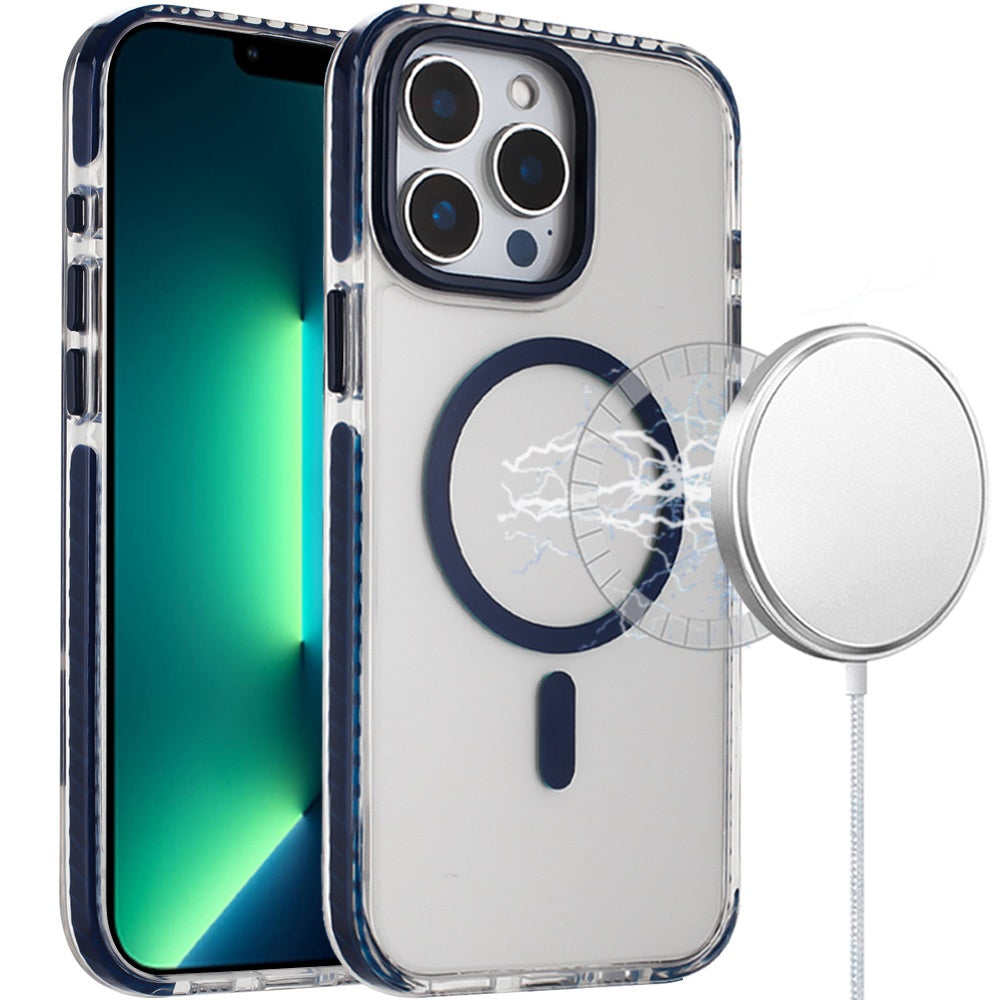 For iPhone 13 Pro Max Case Color Matching Trim Magnetic Circle Clear Back Cover