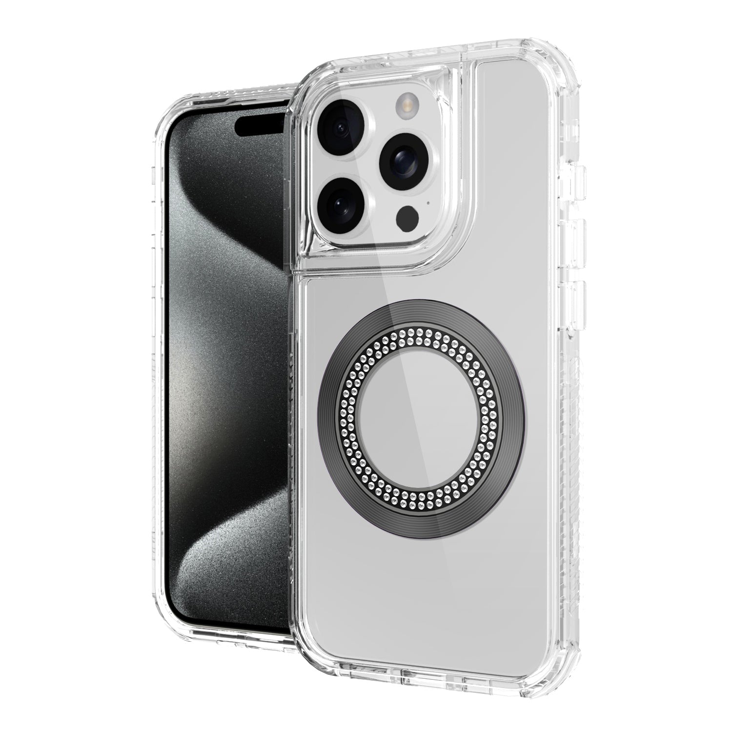 For iPhone 15 PLUS Case Magnetic Charging Circle Bling Hybrid + 2 Tempered Glass