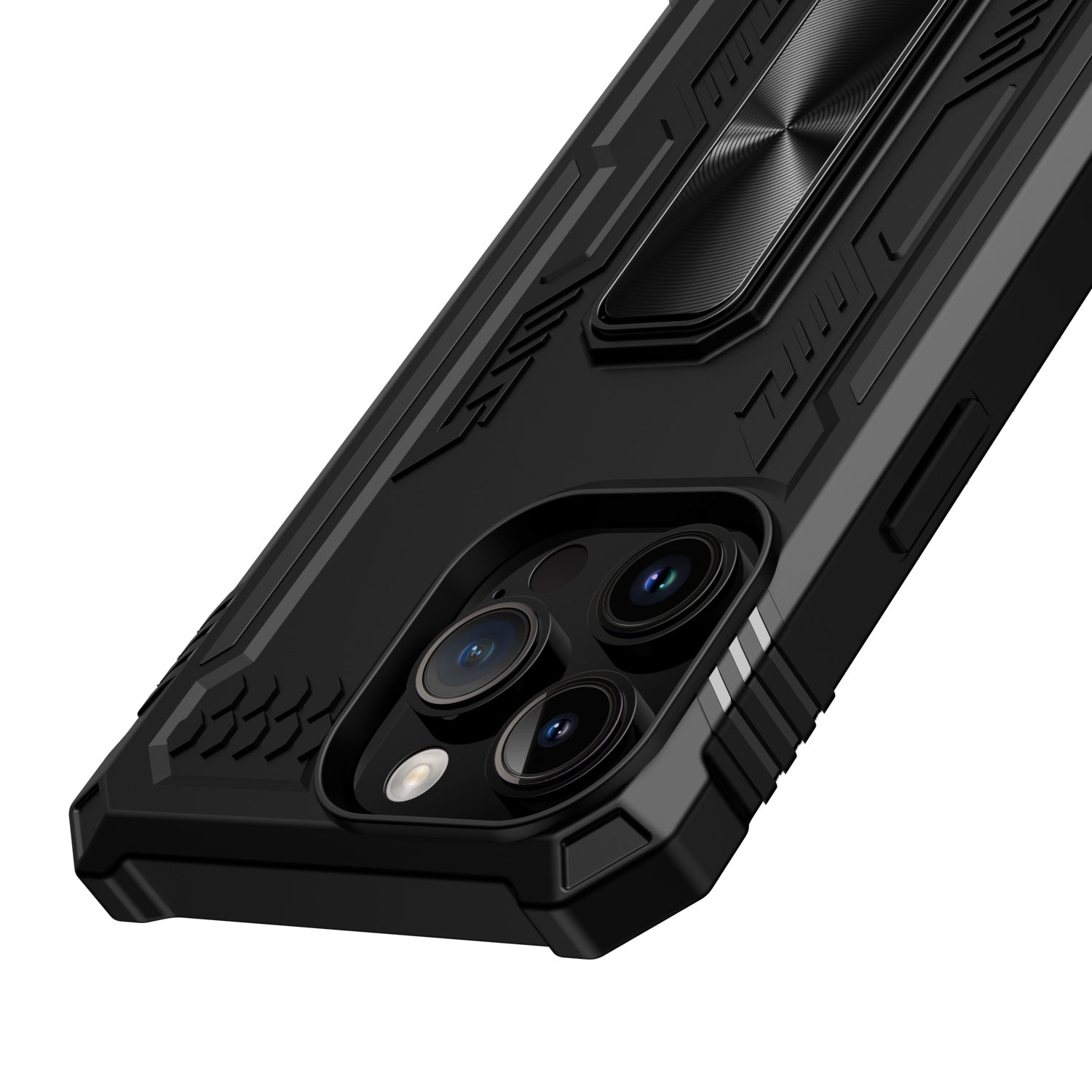 Shockproof Hybrid Phone Cover with Pull-Out Kickstand + 2 Temered Glass Screen Protectors