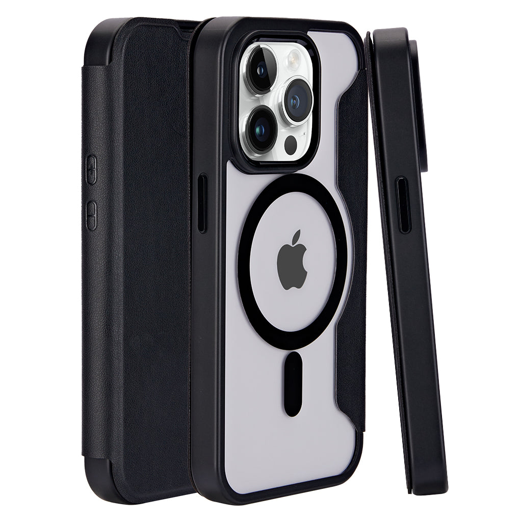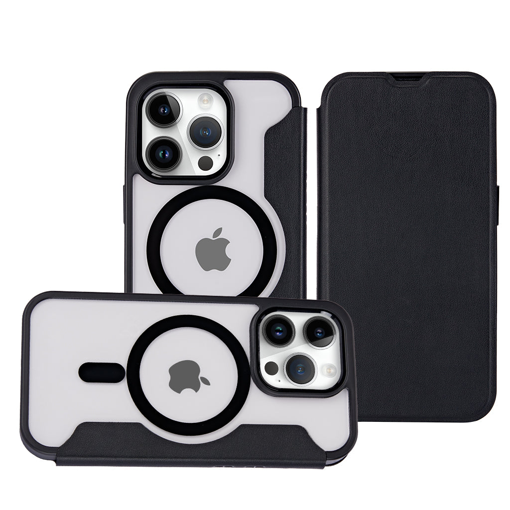 Vegan Leather Magnetic Charging Flip Folio Phone Cover + 2 Temered Glass Screen Protectors