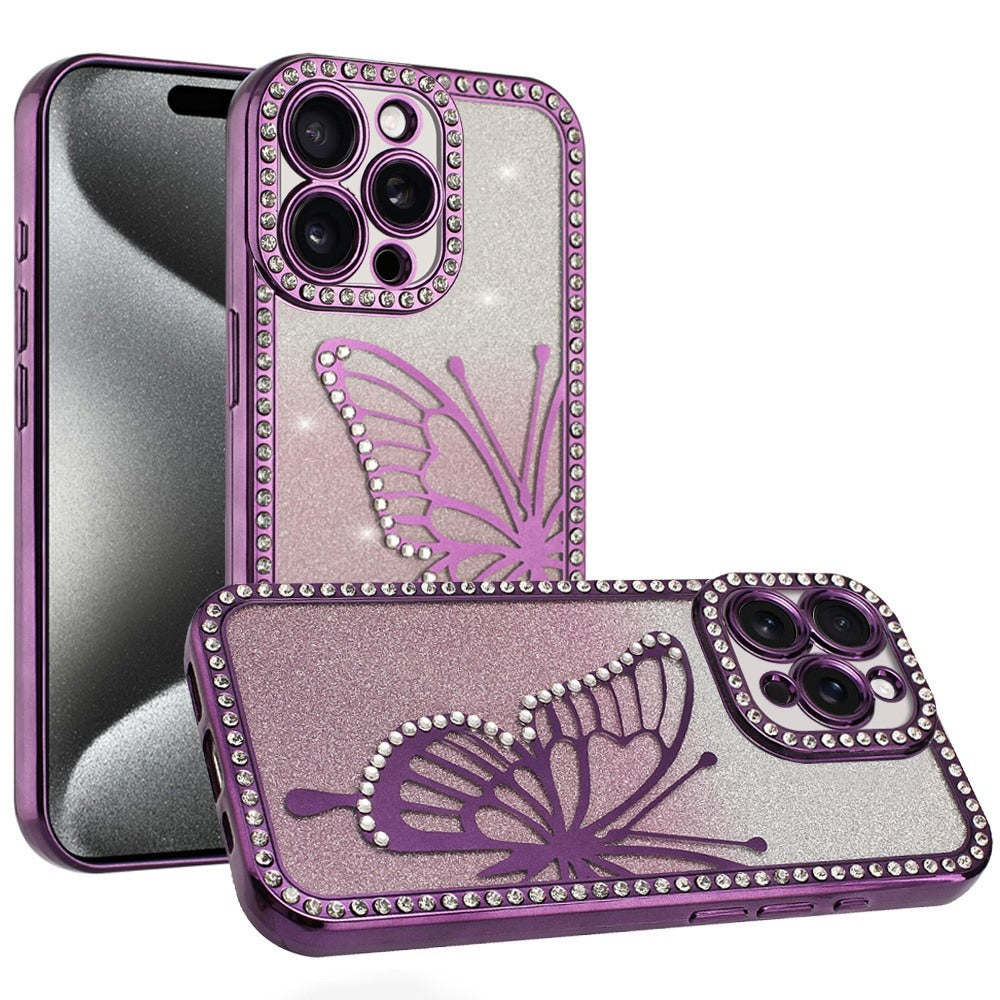 Large Bling Butterfly Full Glitter Phone Case + 2 Tempered Glass Screen Protector