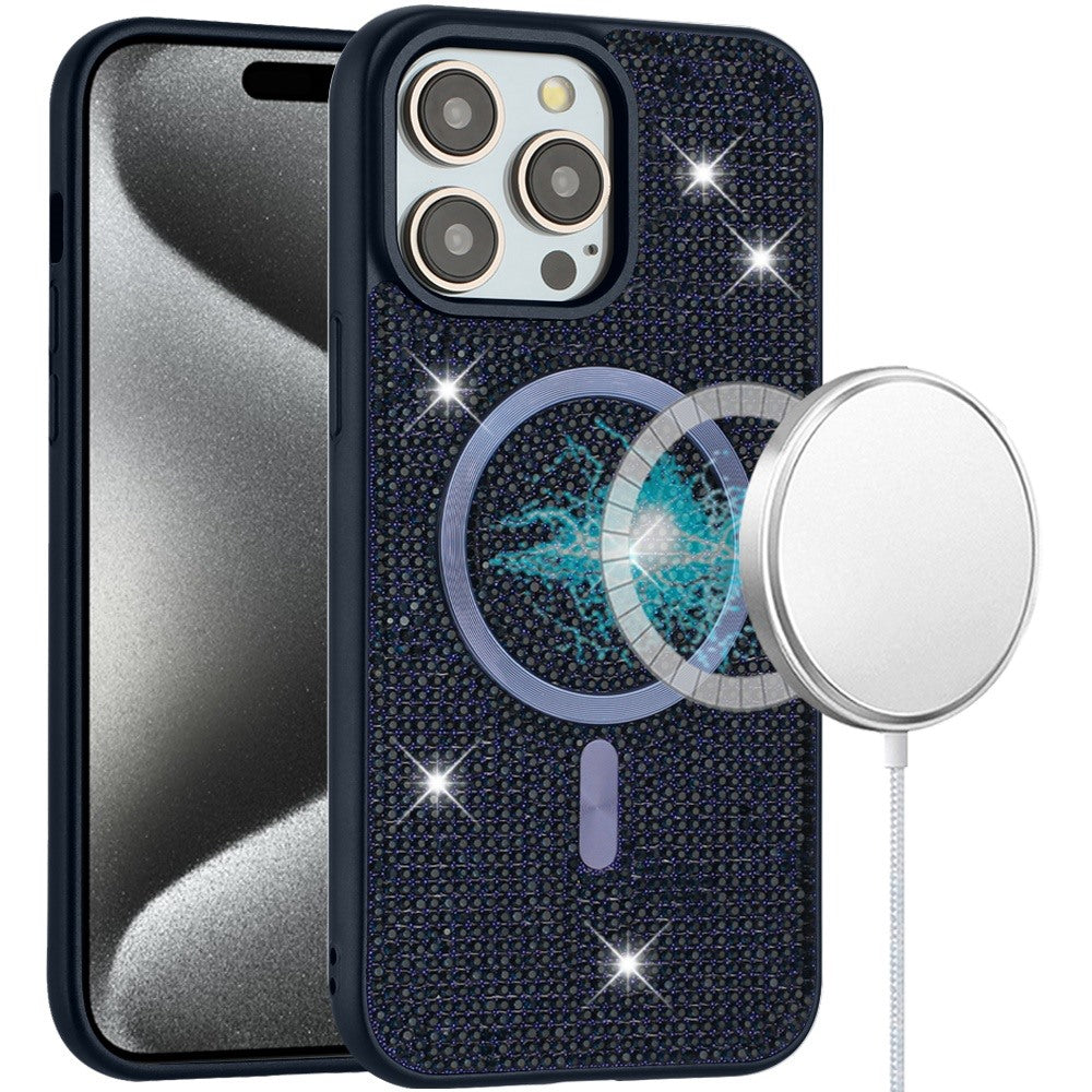 Magnetic Circle Full Bling Dazzle Phone Cover + 2 Tempered Glass Screen Protector