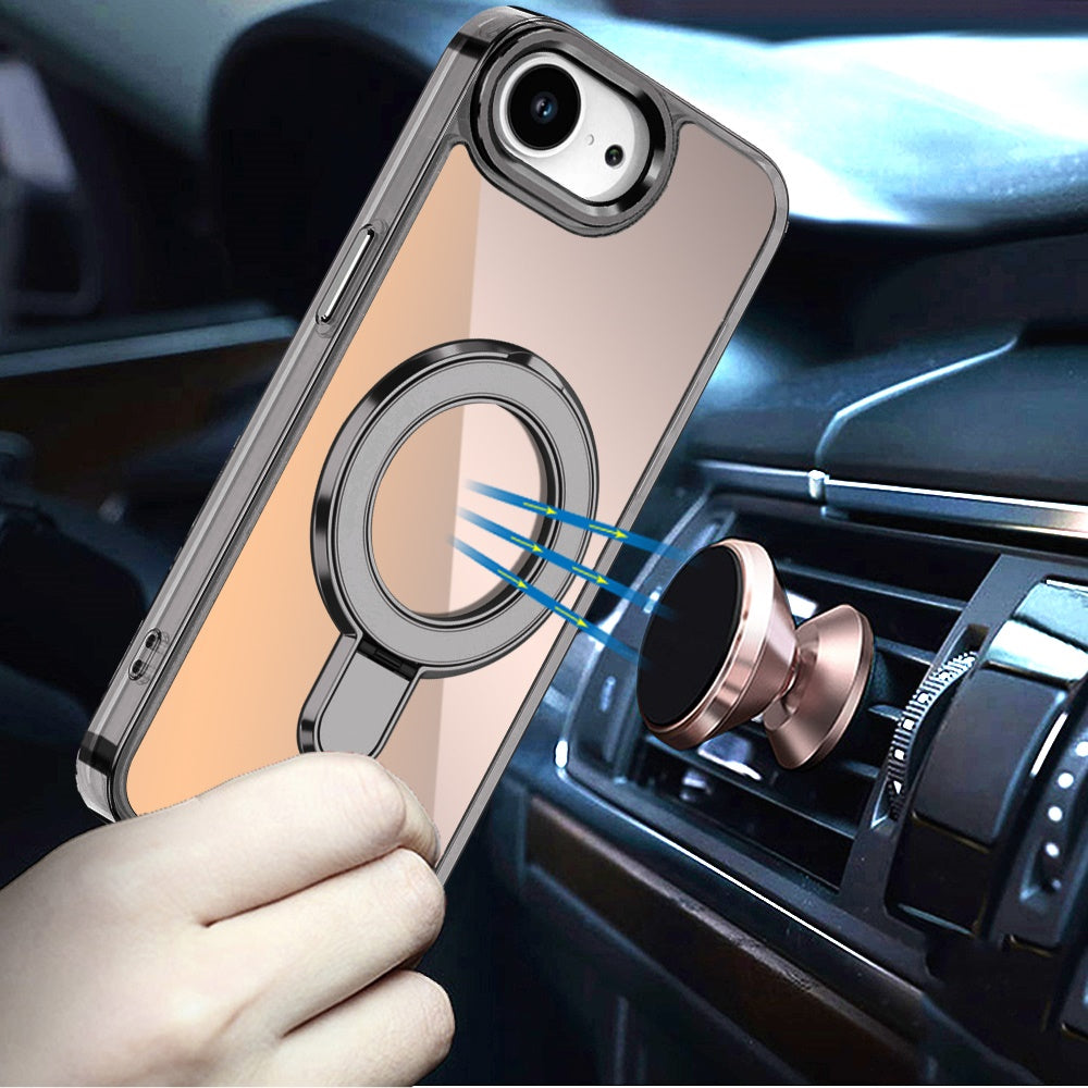 For iPhone 16e Case Radiant Chrome Cover Magnetic Circle Stand + Tempered Glass