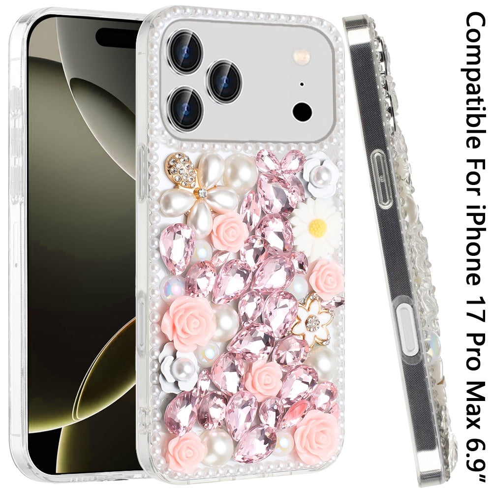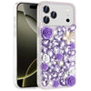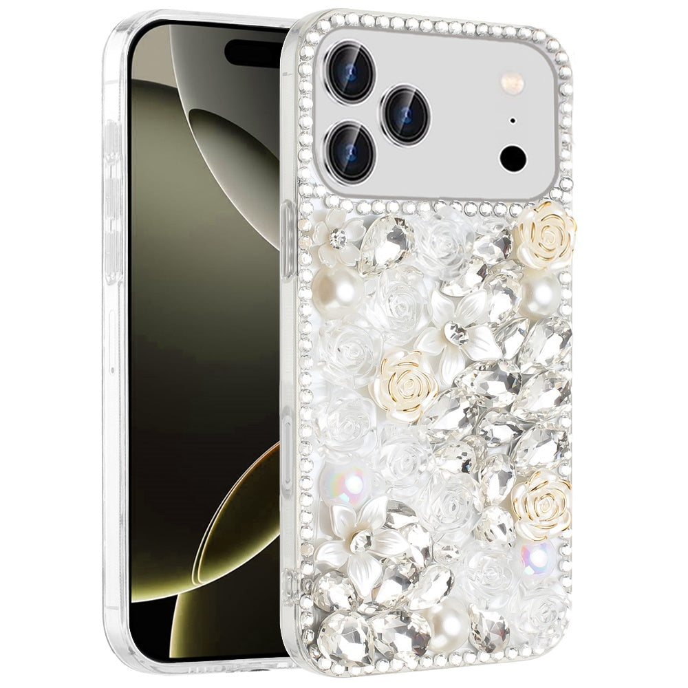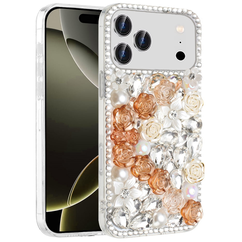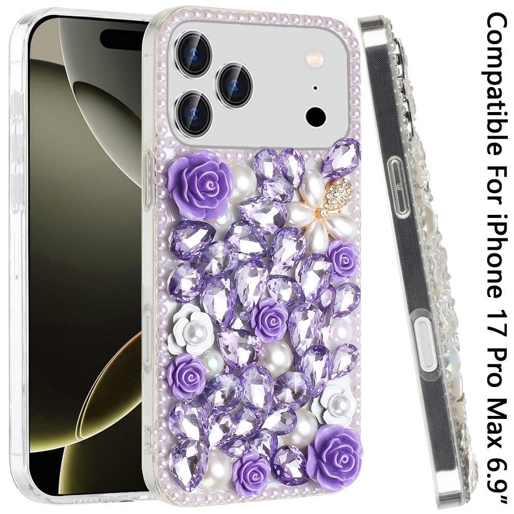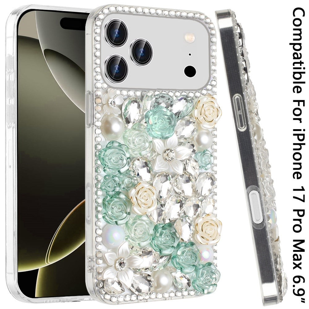 Full Rhinestone 3D Rose Bling Phone Case Cover + Tempered Glass Screen Protector