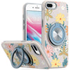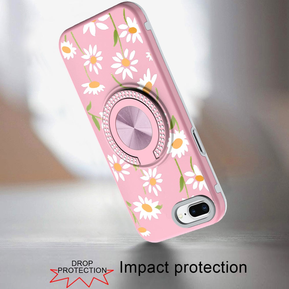 Printed Design Rugged Hybrid with Bling 360 Rotating Ring Stand + Tempered Glass Screen Protector