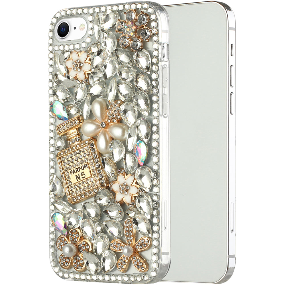 Full Diamond 3D Jewel Ornaments Bling Phone Case + Tempered Glass Screen Protector