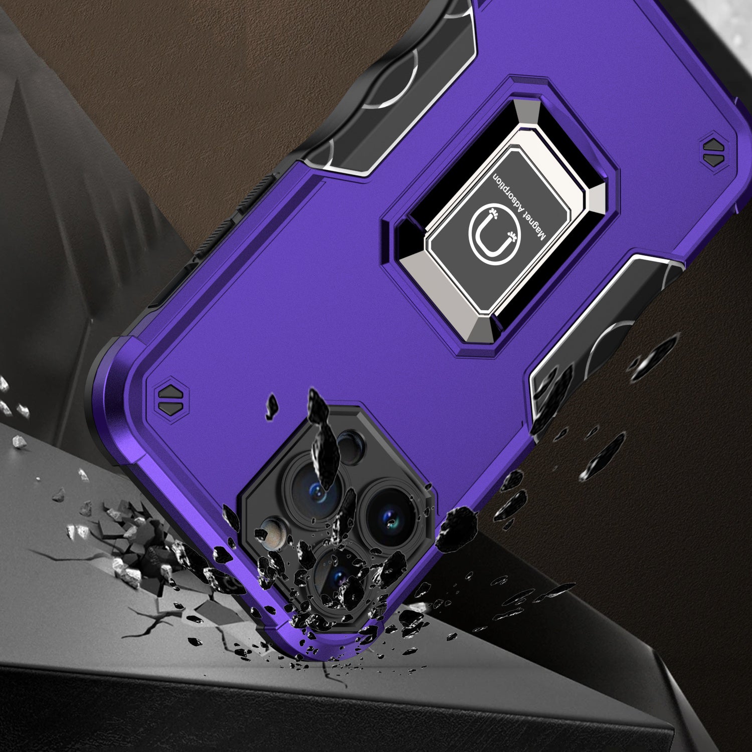 Grip Design Magnetic Ring Stand Protective Phone Case + Tempered Glass Screen Protector