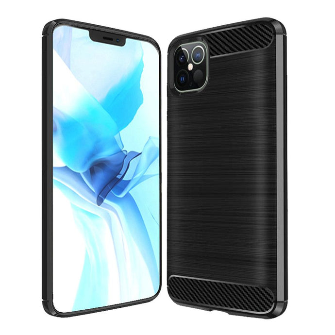 For iPhone 12 Pro Max 6.7 Carbon Fiber Design Lined Brushed TPU